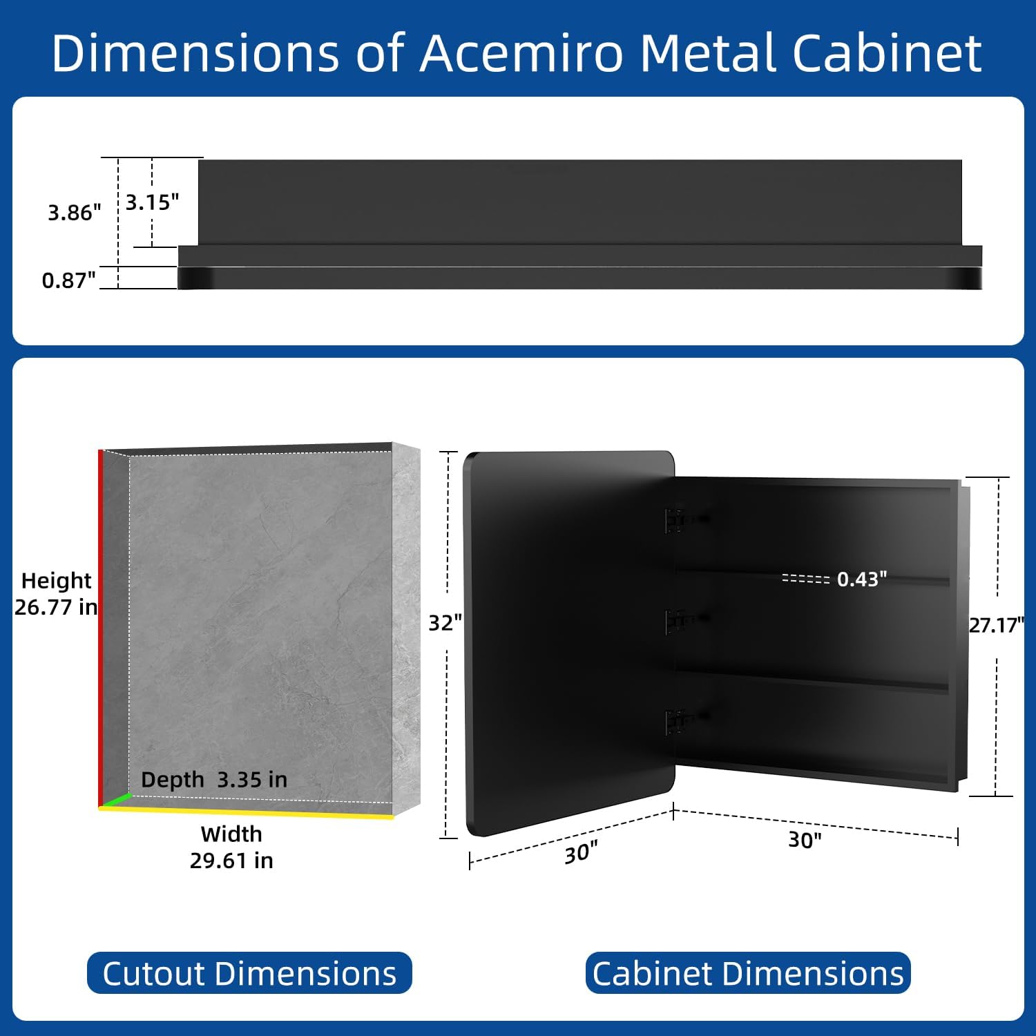 30x32 Inch Bathroom Medicine Cabinet with Mirror Black Metal Framed Mirror Cabinet Recessed or Surface Wall Mounted Medicine Cabinets for Bathroom