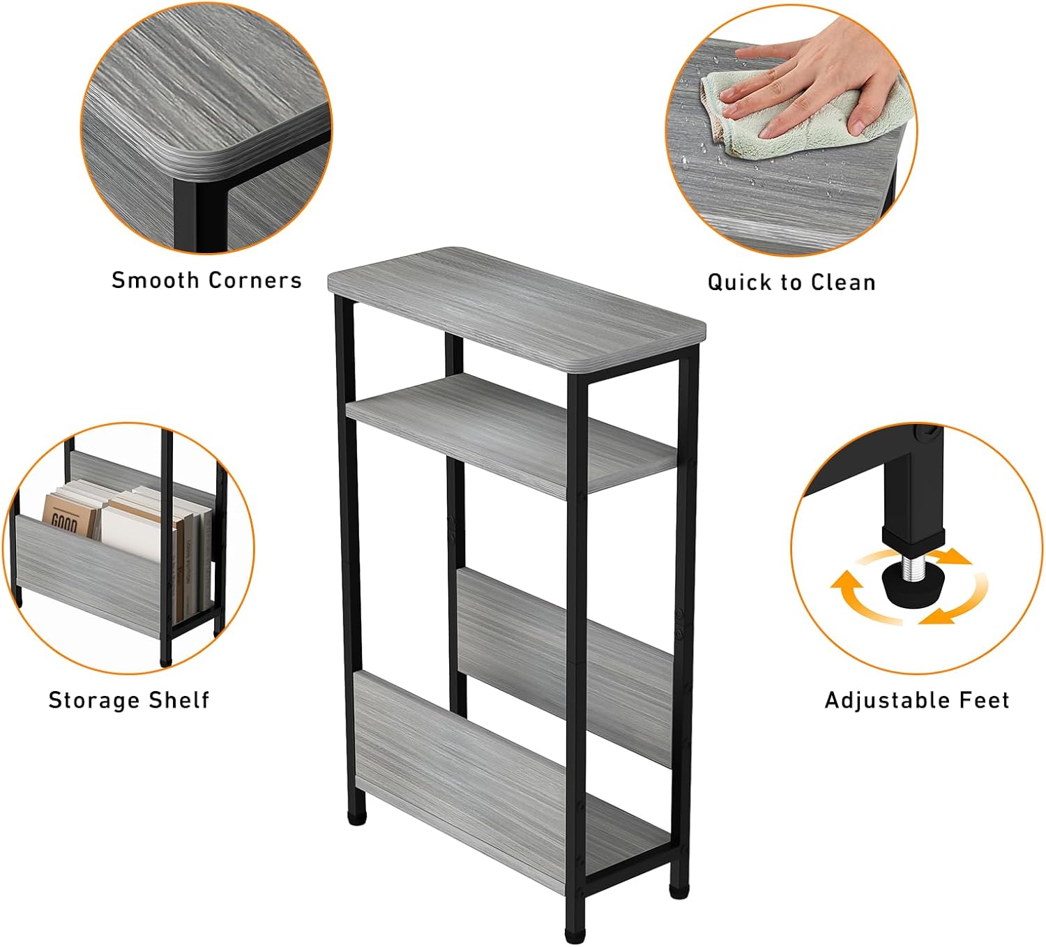 7.1" Narrow Side Table for Small Spaces, 3 Tier Small End Table with Magazine Holder, Slim/Skinny Nightstand/Bedside Table for Living Room, Bedroom, 15.4" L x 24.2" H, Gray