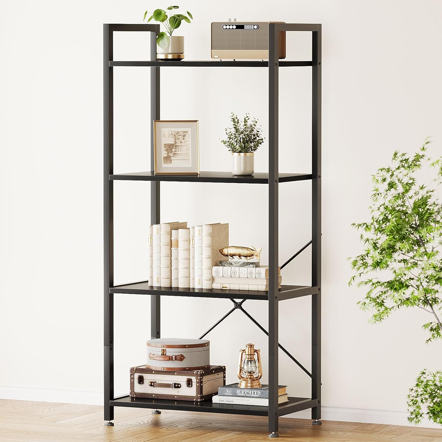 Casaottima Book Shelf, 4 Tier Bookshelf, Modern Wood Bookcase Shelves for Bedroom, Industrial Display Shelf for Living Room Home Office Kitchen, Standing Shelving Unit Storage Organizer, Black