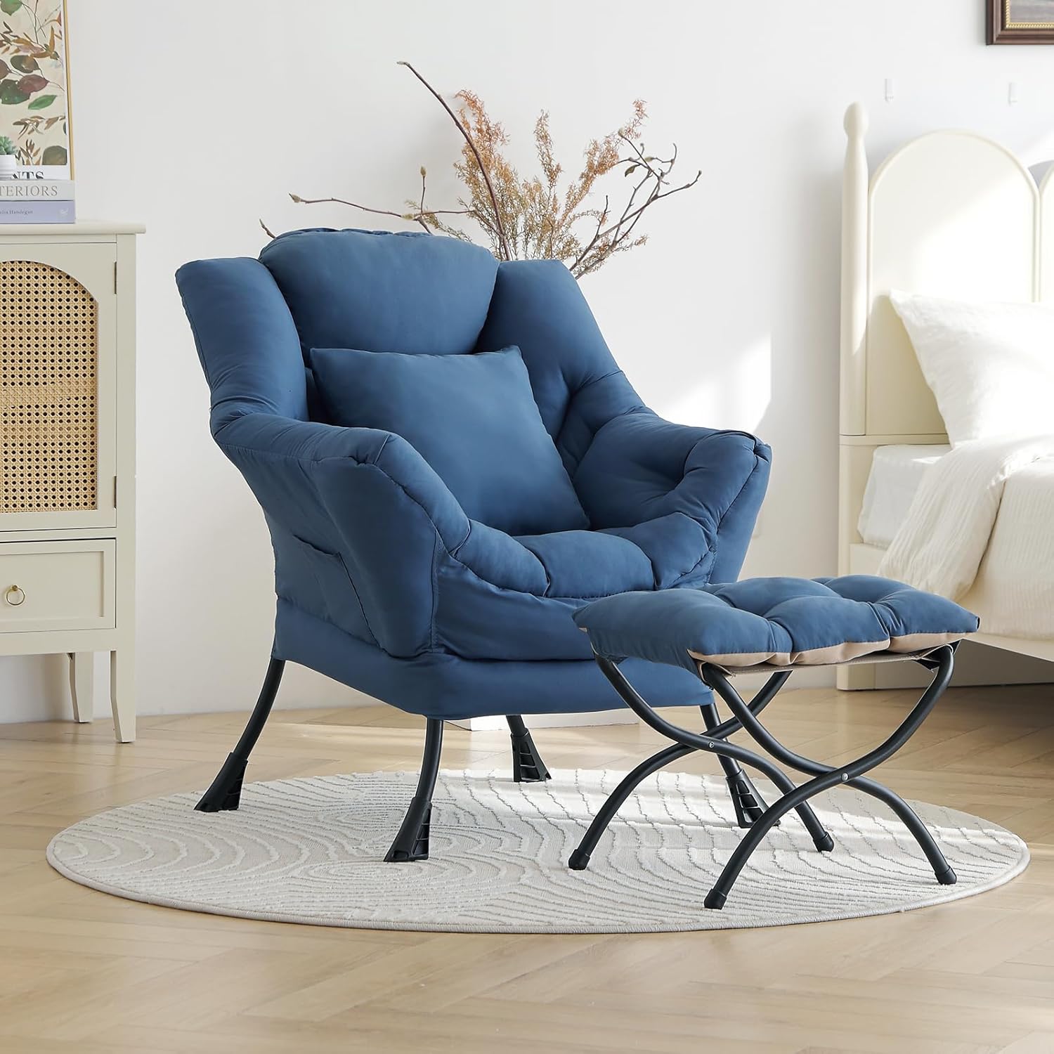 - 【EASY ASSEMBLY】Our lazy chair with ottoman offers a experience, thanks to this comfy chair’s user-friendly design. With clear, illustrated instructions and no need for extra tools, setting up your relaxation easy.