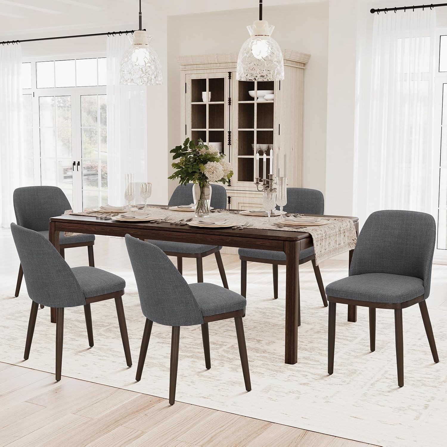COLAMY Upholstered Dining Chairs Set of 6, Modern Kitchen Chairs with Back, Wood Side Dining Room Chairs for Kitchen, Dining Room, Restaurant, Light Grey