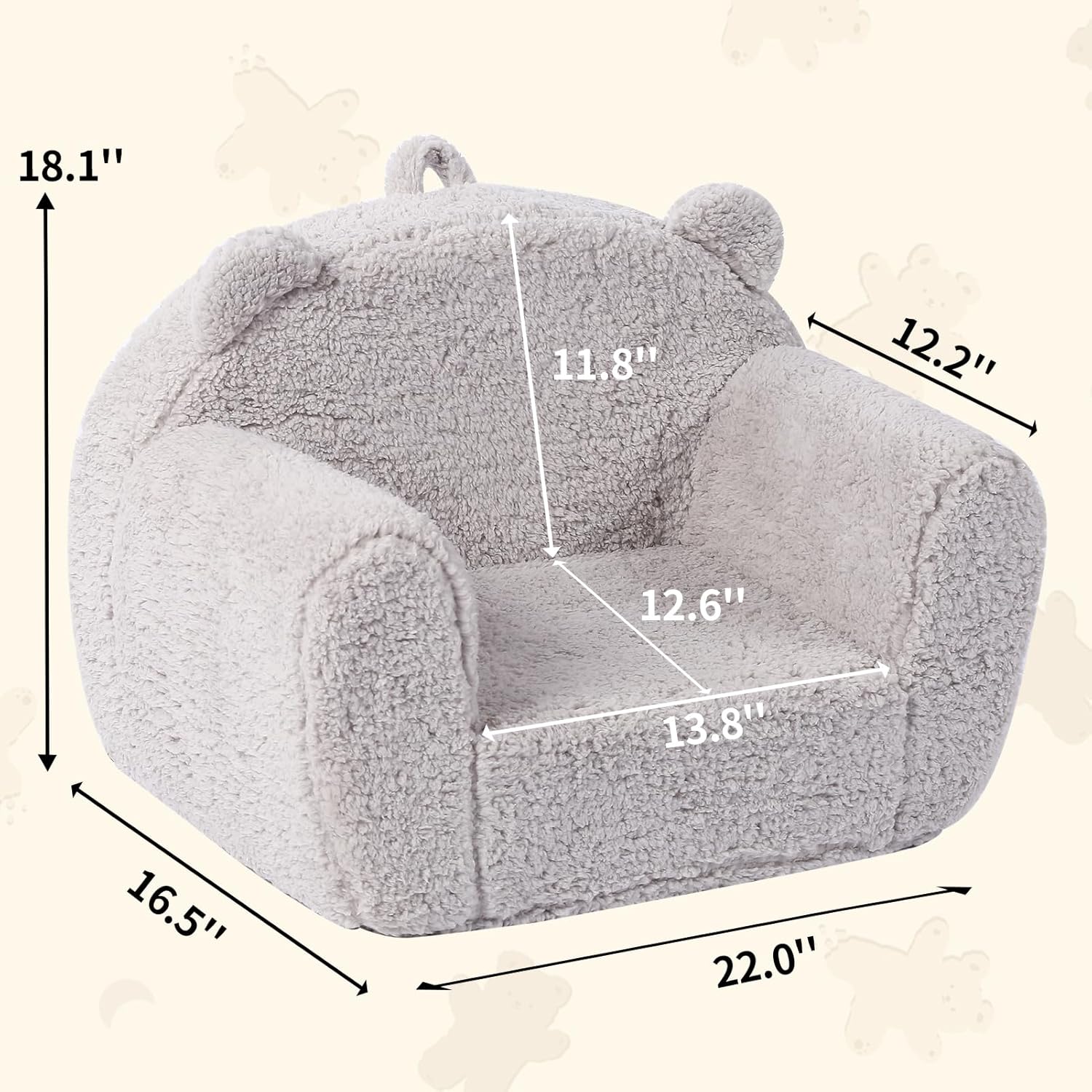 Kids Snuggly-Soft Sherpa Chair, Teddy Bear Cuddly Toddler Foam Chair for Boys and Girls, Grey