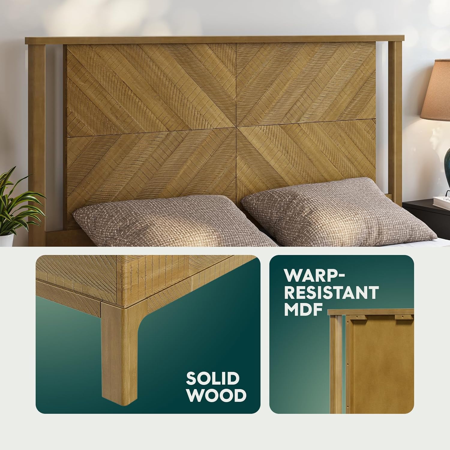 Bme Vivian 14 Inch Deluxe Bed Frame with Headboard, Rustic & Scandinavian Style with Solid Acacia Wood, No Box Spring Needed, 12 Strong Wood Slat Support, Easy Assembly, Queen, Rustic Seadrift