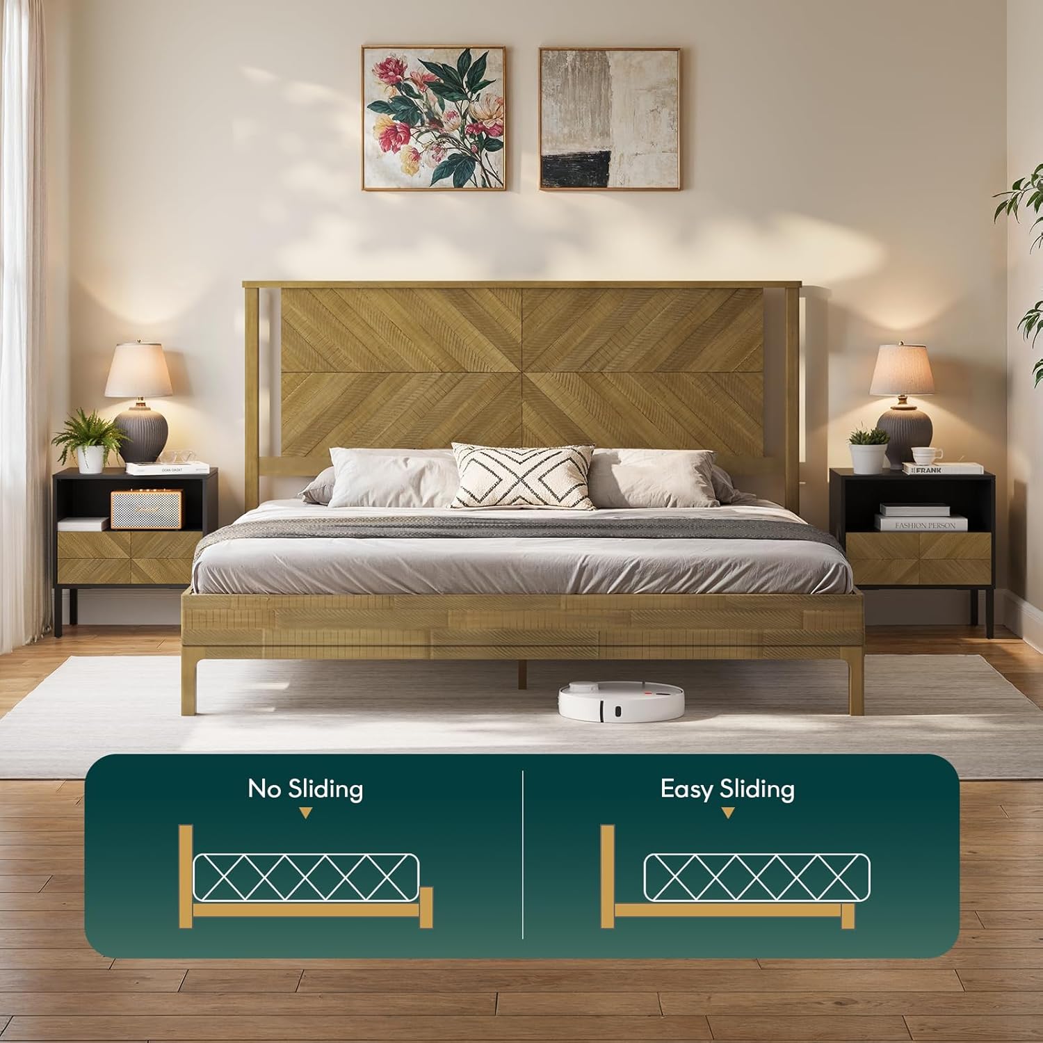 - STURDY AND BEAUTIFUL: A durable, king bed frame and headboard with design lends optimal mattress support while a unique wood grain finish makes our foundation an impressive centerpiece for your main suite