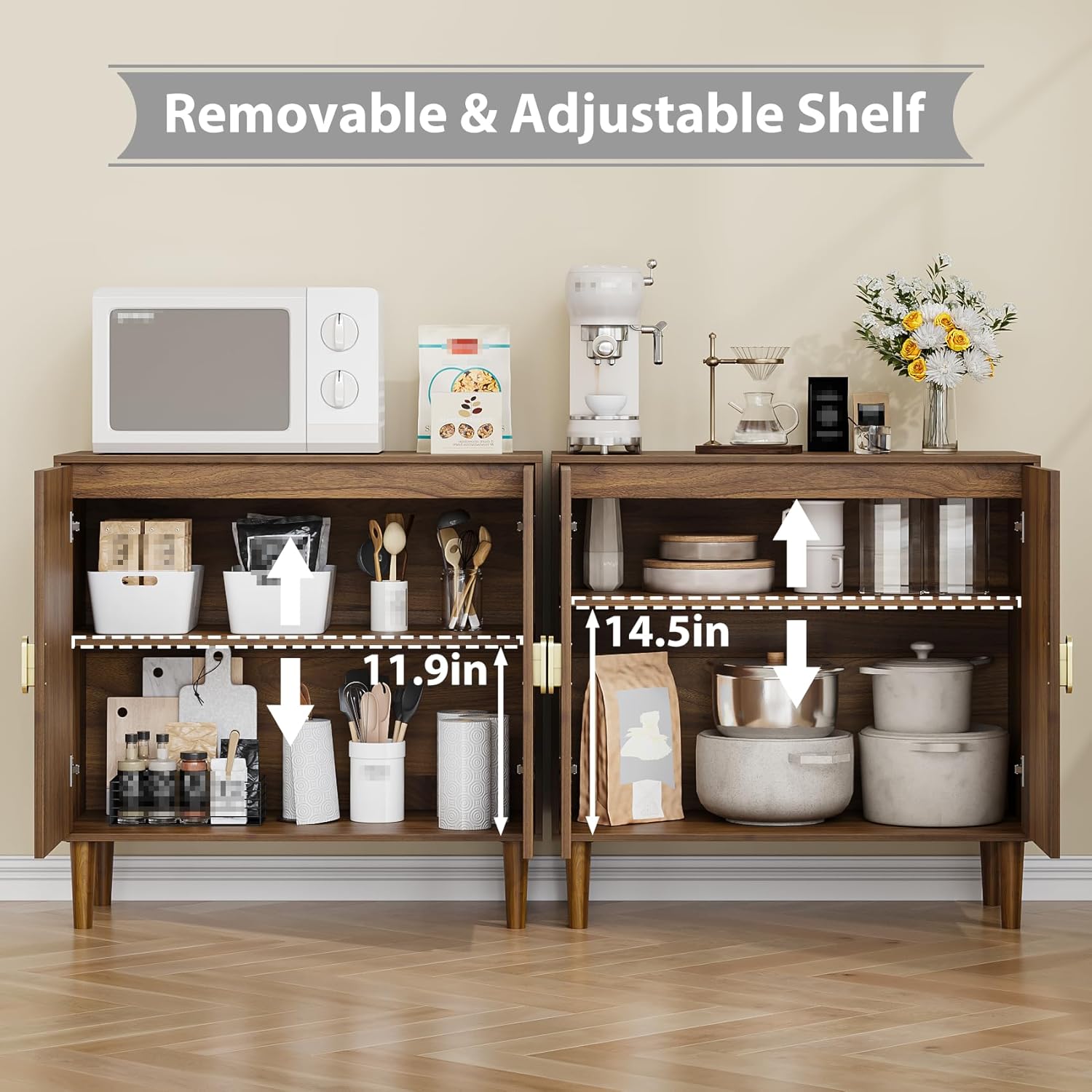- With versatile design and ample storage space, this wooden buffet sideboard cabinet can be used as a kitchen pantry, a coffee bar station, a hutch cupboard, a home office cabinet, etc.