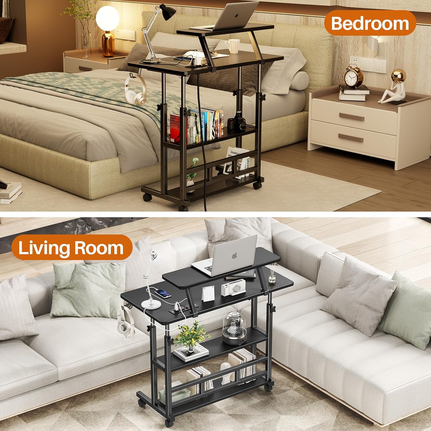 - Large Storage Space:Add a multifunctional monitor stand on the desktop, which can not only be used as a laptop and tablet, but also as a creative space to display small personal ornaments. The underside of the desktop is equipped with double storage shelves for easy storage of everyday items and a safety stopper on the bottom to prevent items from falling. Whether it's your living room or office, it will help you organize and beautify your space efficiently!