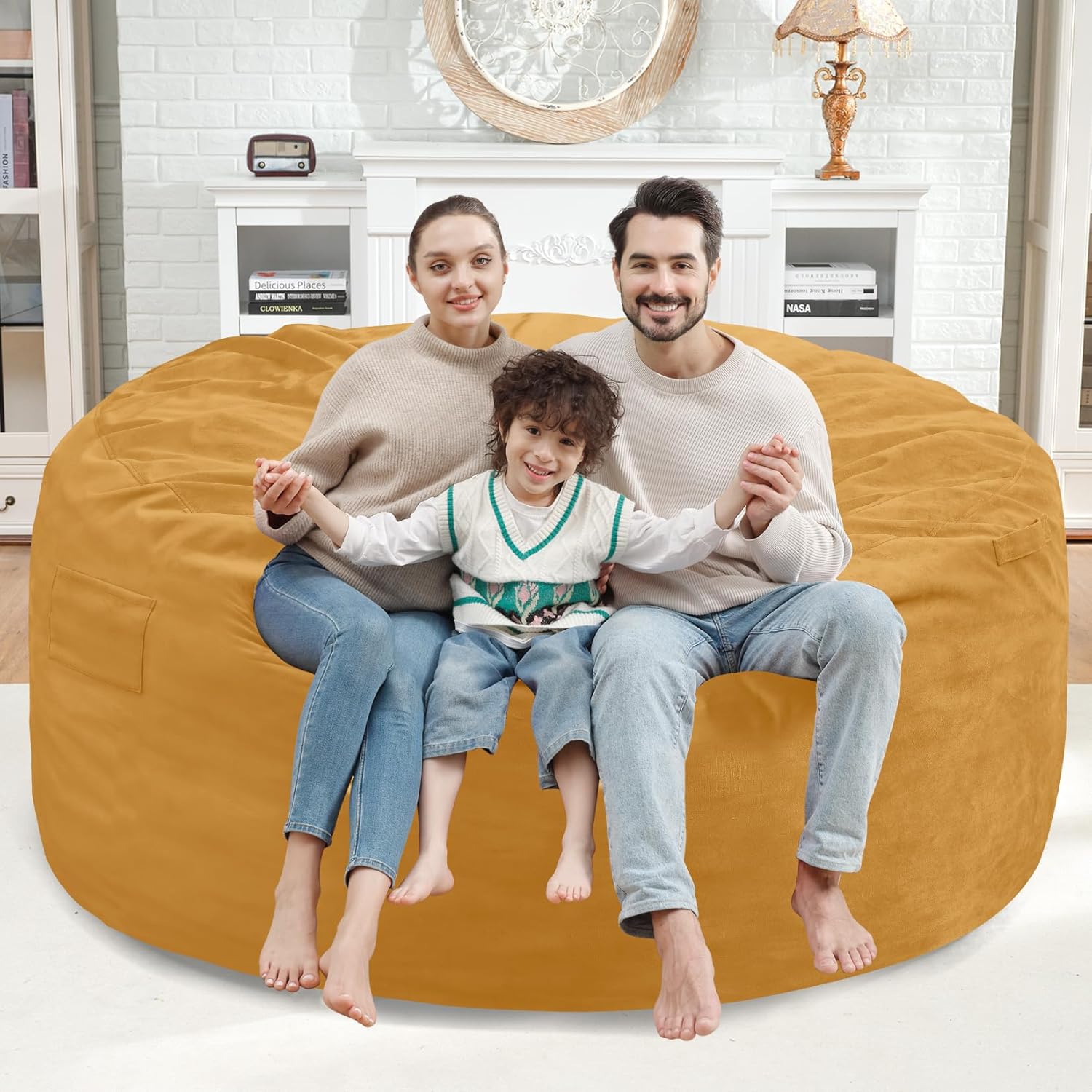5FT Bean Bag Chair, Large Bean Bag Chairs with Memory Foam Filled, Fluffy Beanbag Sofa with Dutch Velvet Cover, Round BeanBag Chairs for Living Room, Playroom - Mustard