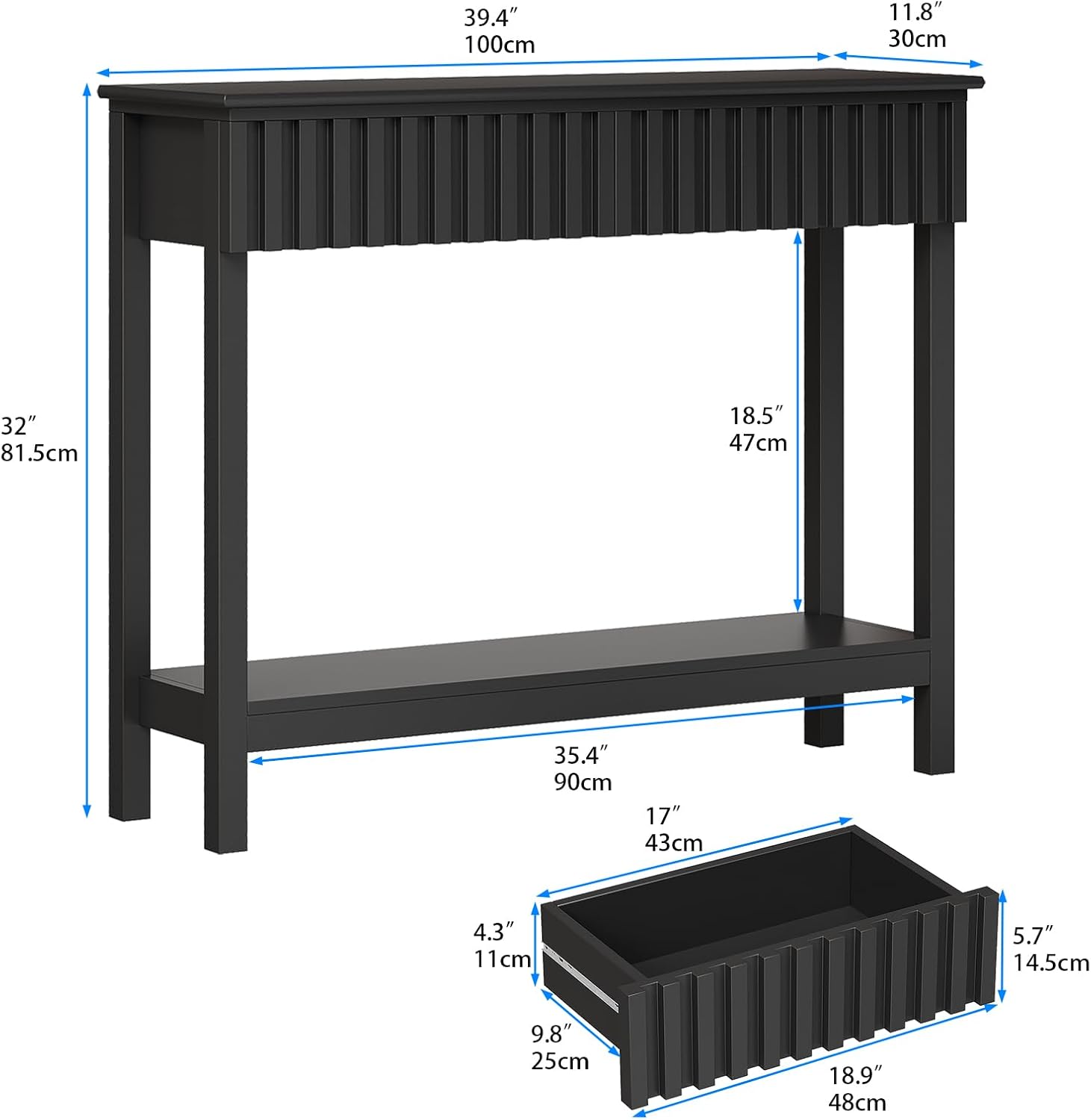 - Elegant Fluted Design: The console table featuring stylish and clean design.The two drawers have elegant, piano-style grooves, combining sleek design with quality for both function and style.Ideal for adding a modern charm to your home with simple style
