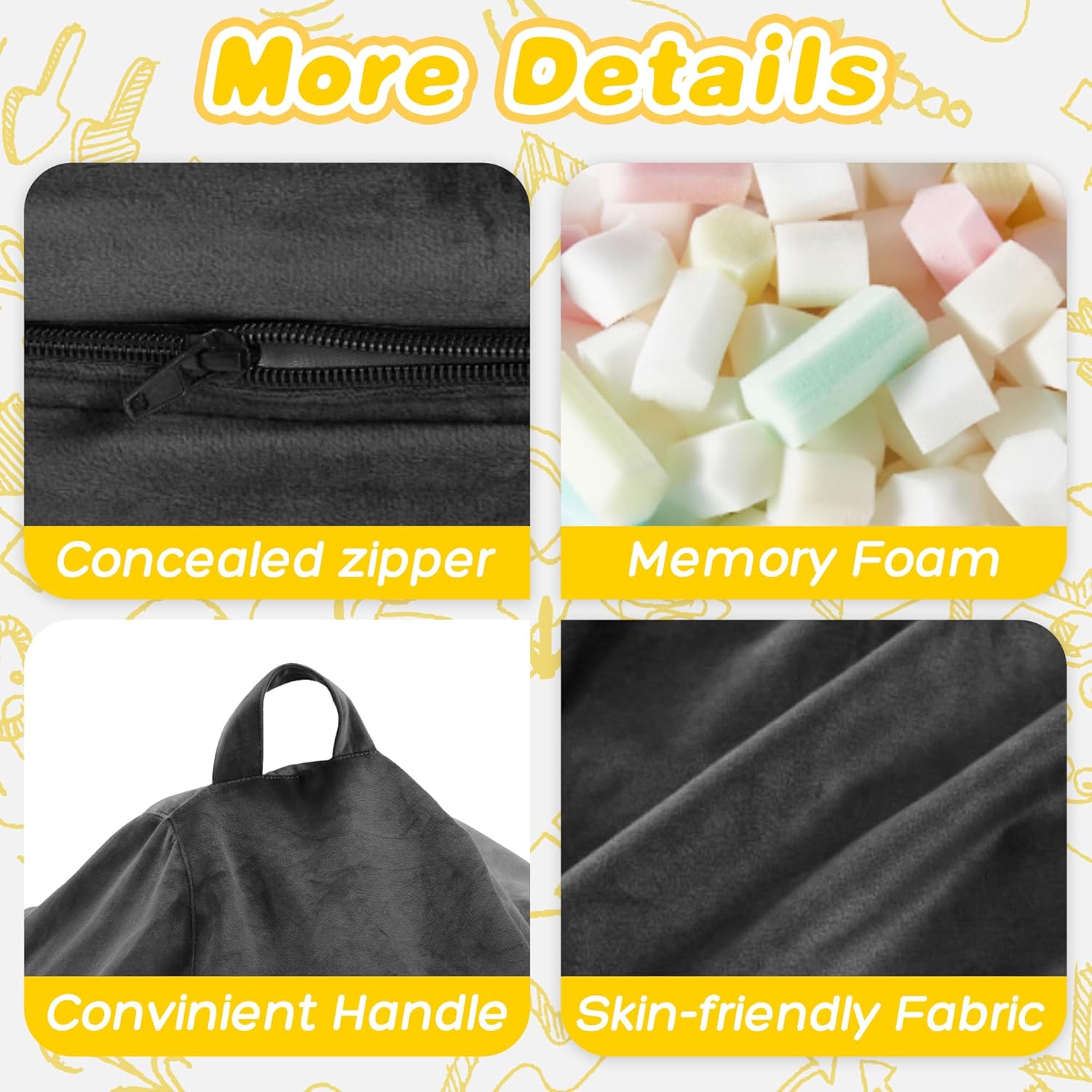 - Fun for Everyone: These memory foam bean bag chairs are the perfect addition for your dorm rooms. Easily accessible and lighter than most home recliners. With the handle design family can move them with ease, making them ideal for movie night, game night, and reading.