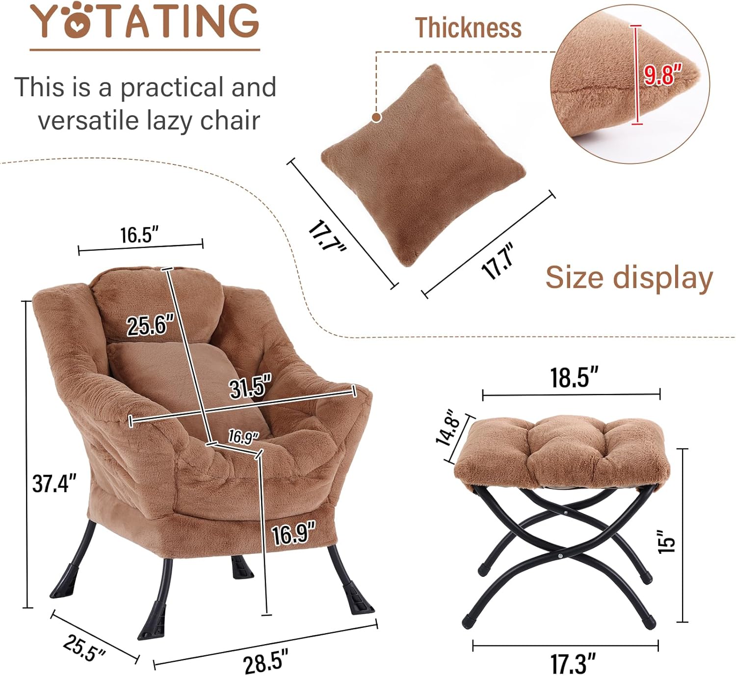 Lazy Chair with Ottoman, Comfy Reading Lounge Chair with Footstool & Throw Pillow Modern with Armrests & Side Pocket for Living Room, Bedroom, Dorm Room, Plush Brown