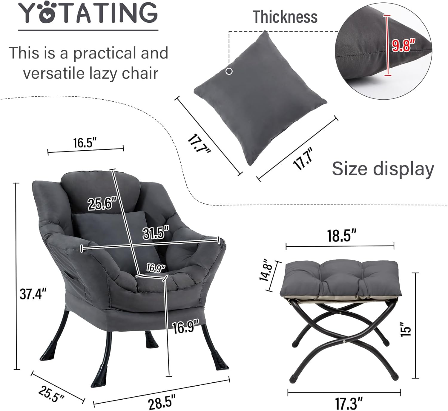 - Reading Chair with Footstool: Features a foldable footstool that you can use to relax your feet or as an extra seat. It's easy to store when not in use, making it ideal for small spaces. It is a wonderful addition to any rooms, bedroom living room, dorm room, and so on.