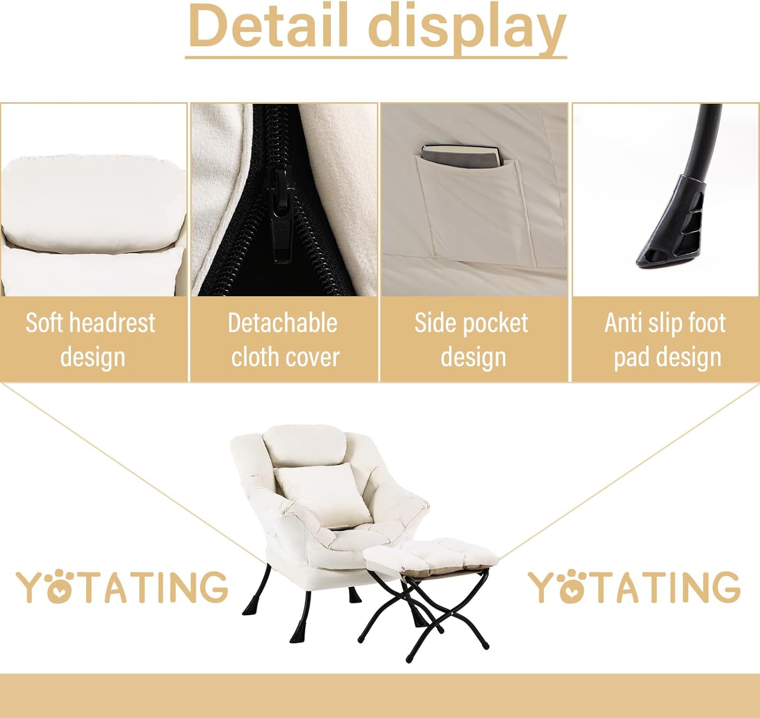 - Reading Chair with Footstool: Features a foldable footstool that you can use to relax your feet or as an extra seat. It's easy to store when not in use, making it ideal for small spaces. It is a wonderful addition to any rooms, bedroom living room, dorm room, and so on.