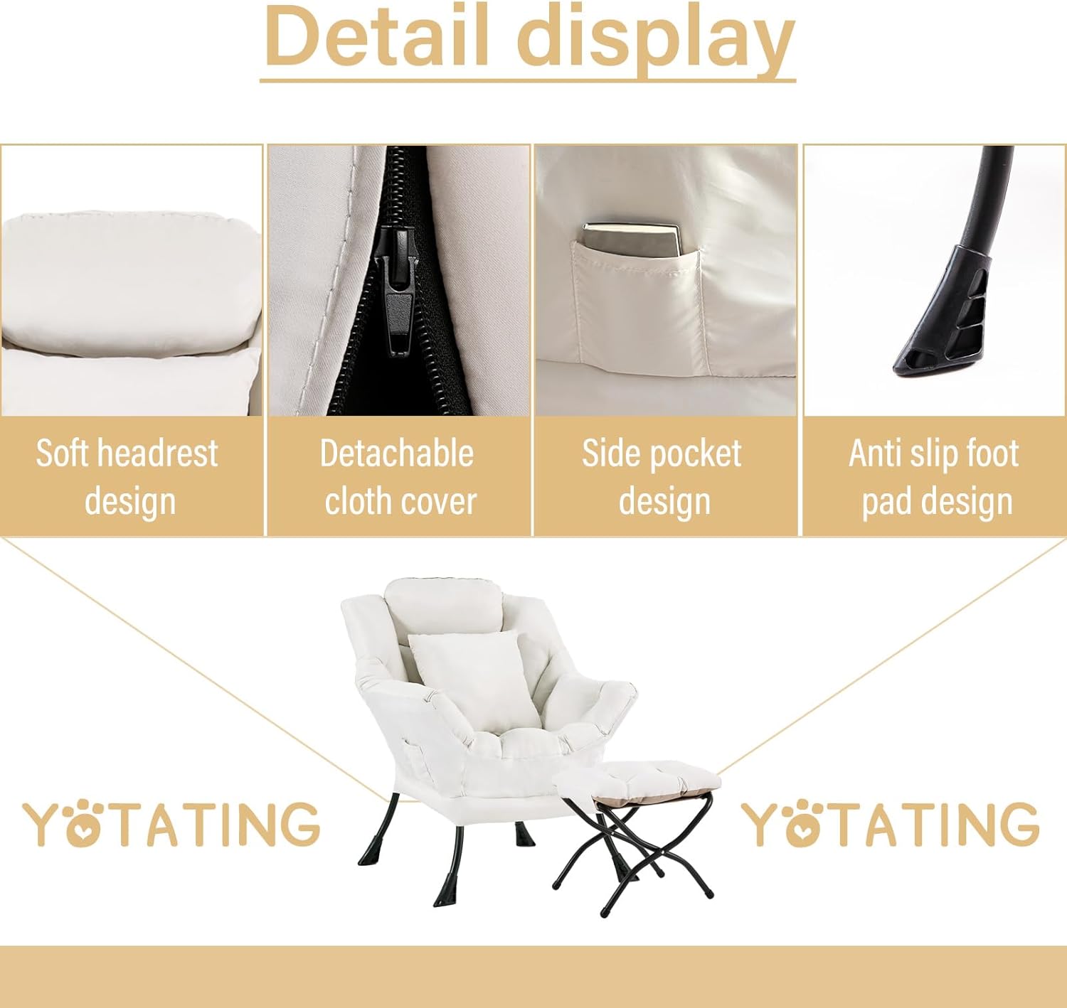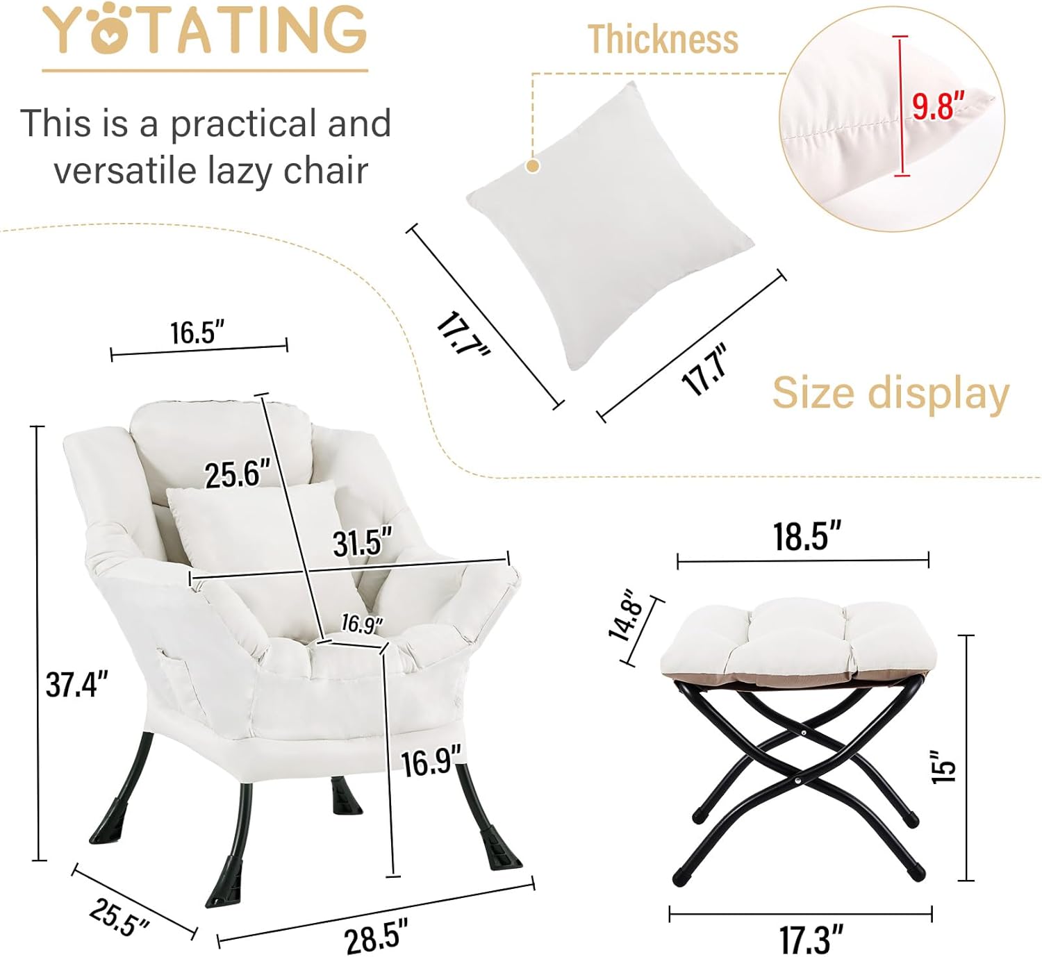 - Reading Chair with Footstool: Features a foldable footstool that you can use to relax your feet or as an extra seat. It's easy to store when not in use, making it ideal for small spaces. It is a wonderful addition to any rooms, bedroom living room, dorm room, and so on.