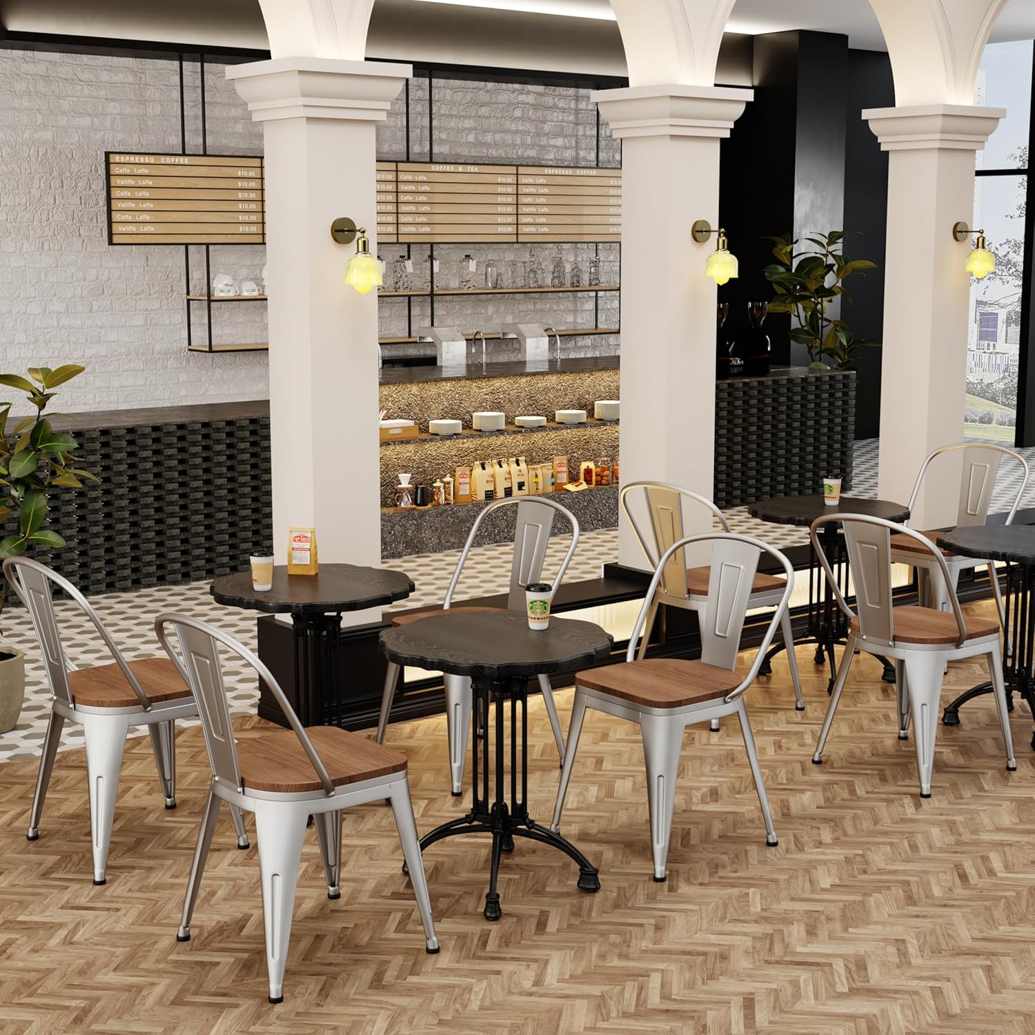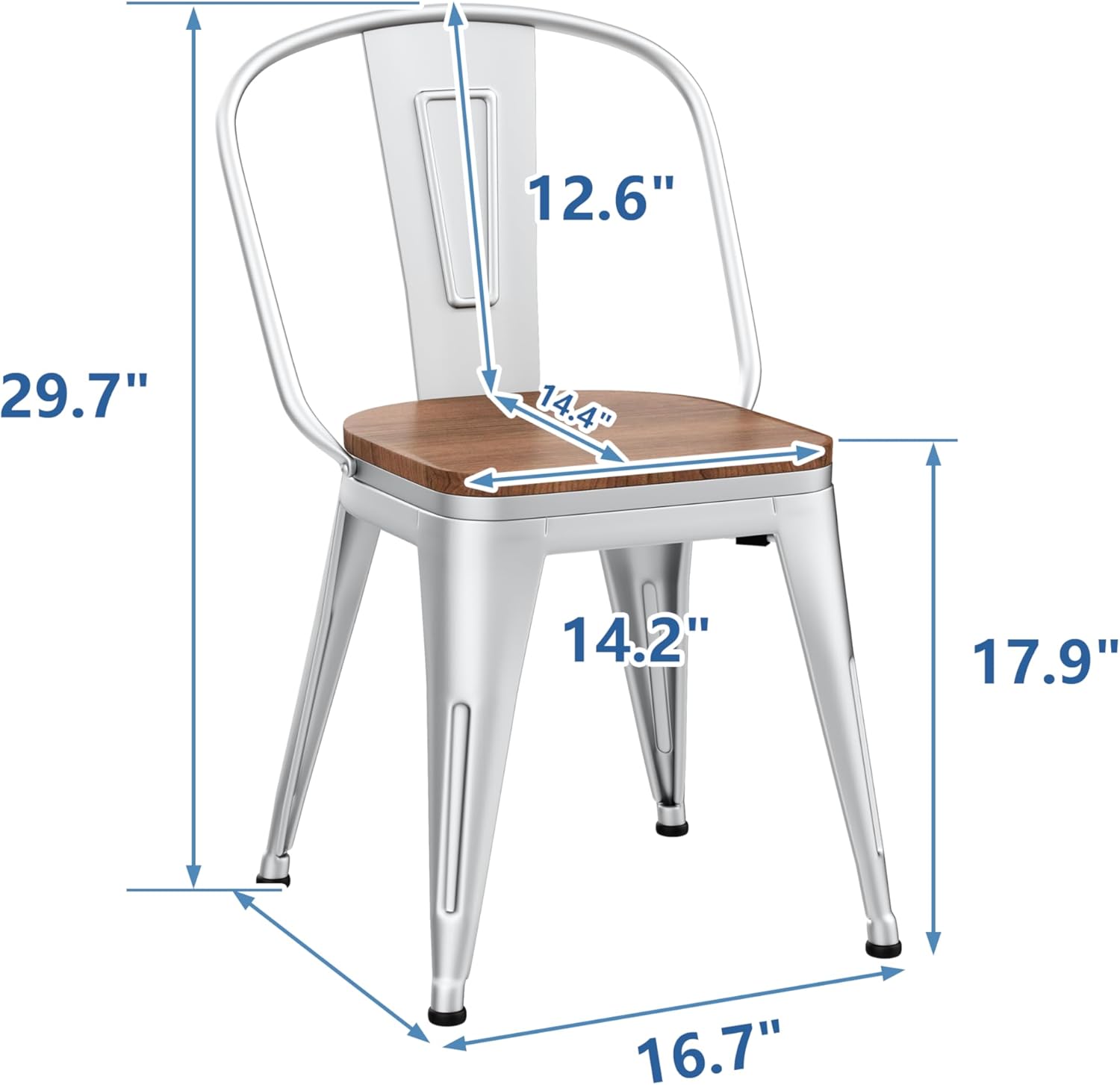 18 Inch Metal Dining Chairs,Arlunar Farmhouse Chairs Set of 4 Black Dining Room Chairs Stackable with Back and Wooden Seat bar stools