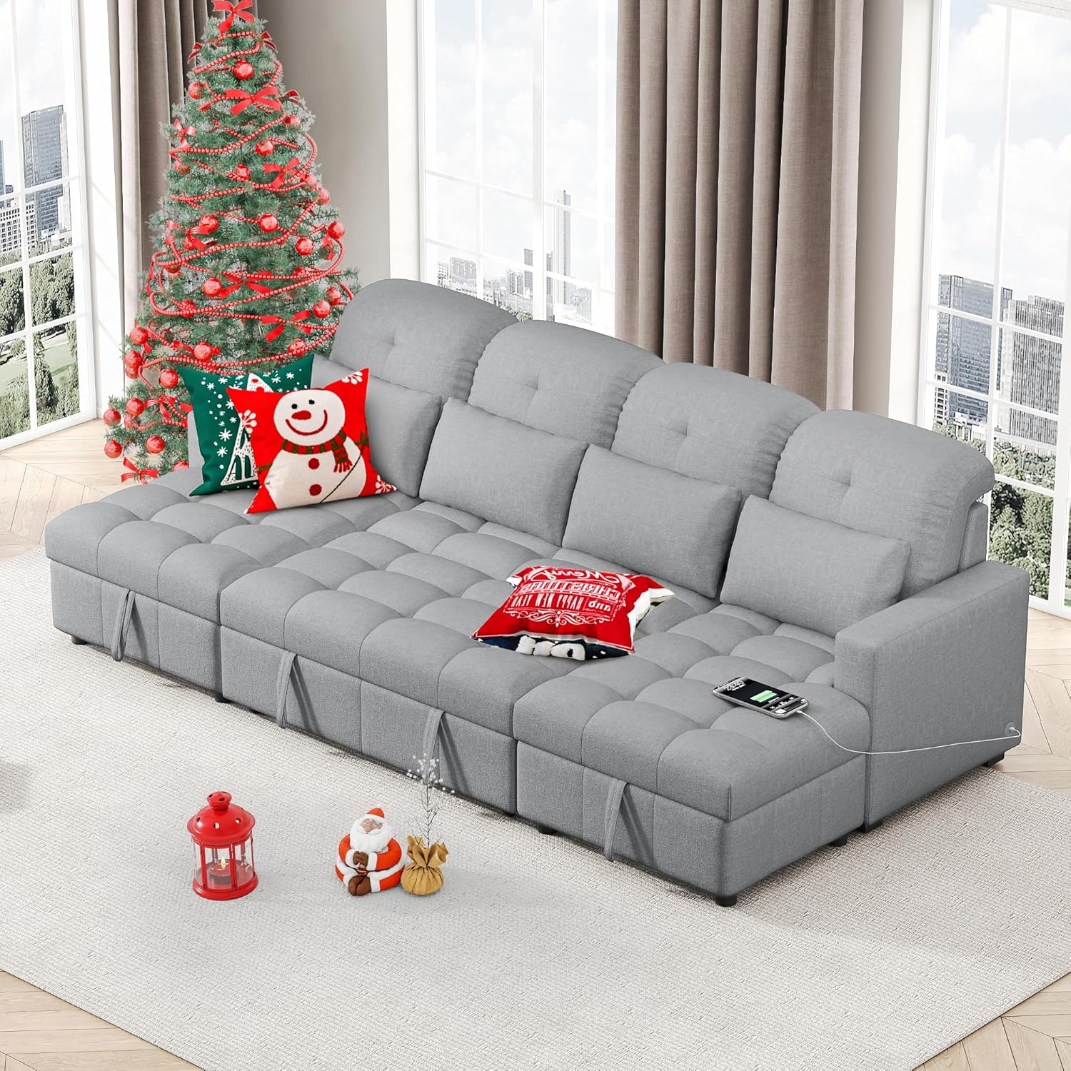 Ball & Cast 110.2" Oversized Versatile Sectional Sleep Sofa with Two USB Ports,U-Shape 4 Seat Pull-Out Couch w/Double Storage Chaise Lounges,for Living Room,Apartment,Office,Gray