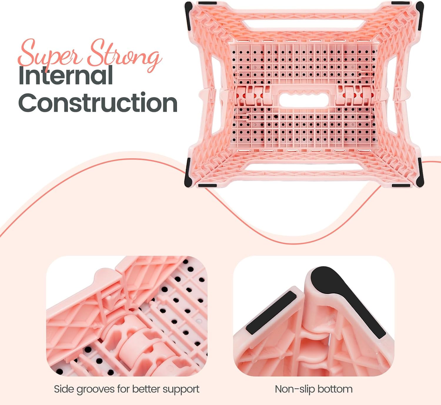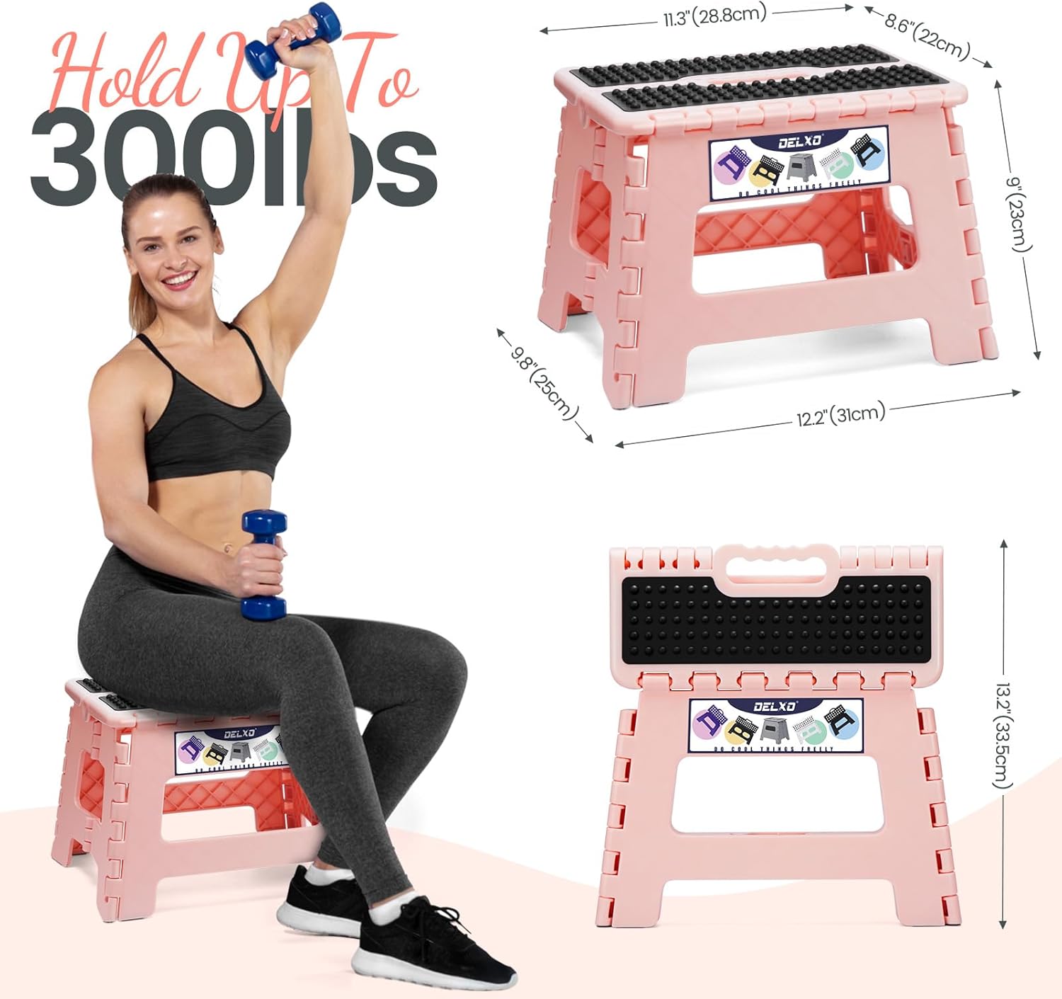 Delxo Folding Step Stool 9 Inch,Non-Slip Foldable Stools Up to 300 LBS,Kitchen Collapsible Fold Up Stepping Stool with Dotted 1 Pack,Pink