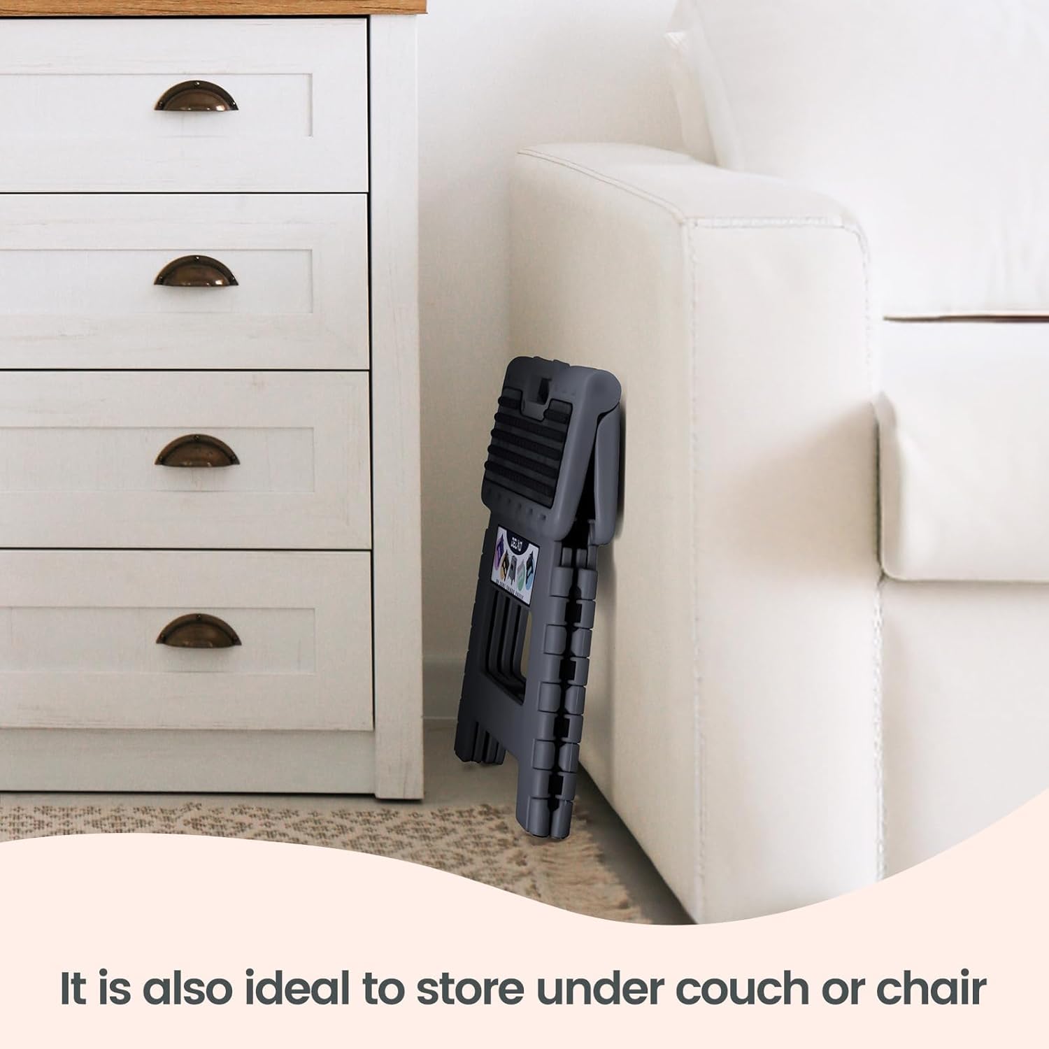 - Space Saving Foldable Stool : Delxo step stool save your closet space more than 90% when it folded up.It's quickly and easily folds away for convenient storage so you can opens with one flip of the hand.Also you can hides them in corner at home because it's so compact
