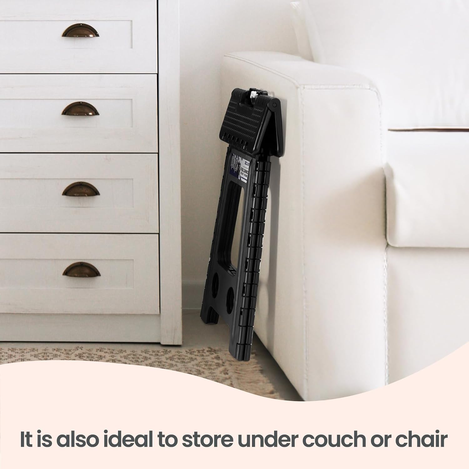 Delxo Folding Step Stool 17.5 Inch Non-Slip Foldable Stools Up to 300 LBS Kitchen Collapsible Fold Up Stepping Stool with Dotted 1 Pack Black