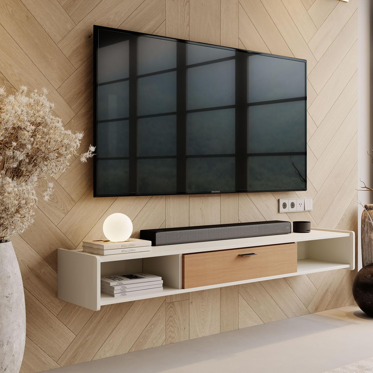 - Elegant Floating Design: This wall-mounted TV stand adds a modern, space-saving touch to your living room, creating a clean and clutter-free look.