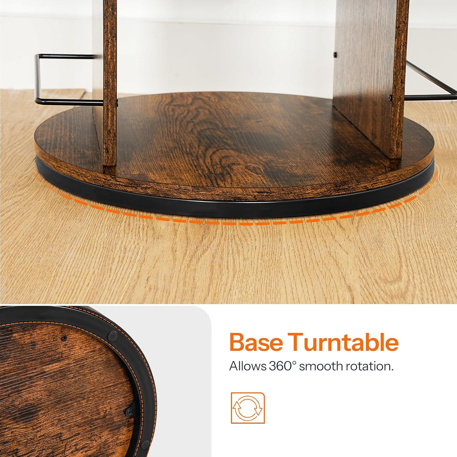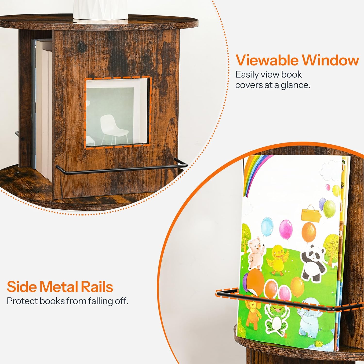 - Sturdy 360° Rotating Bookshelf: The rotating bookshelf is made of high-quality metal frames and thick panels, with excellent load-bearing capacity and will not tilt or swing easily. The base of the rotating bookshelf is equipped with a flexible 360° turntable to display your book collection from all angles