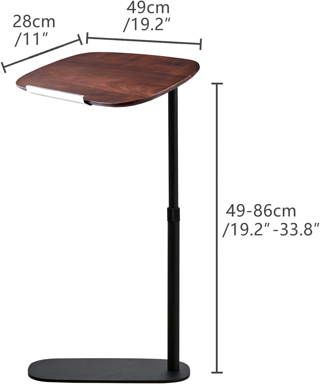 - 【Weight and Size】The table's unique C-shaped design and thin, lightweight base allows it to easily slide under your couch or bed, giving you more floor space in your living room. The tabletop measures 19 x 11 inches, providing plenty of room for your laptop, vase, remote control or any other small home accessories. The worktop has a maximum carrying capacity of 7 kilograms, which ensures that it can easily accommodate most everyday items.