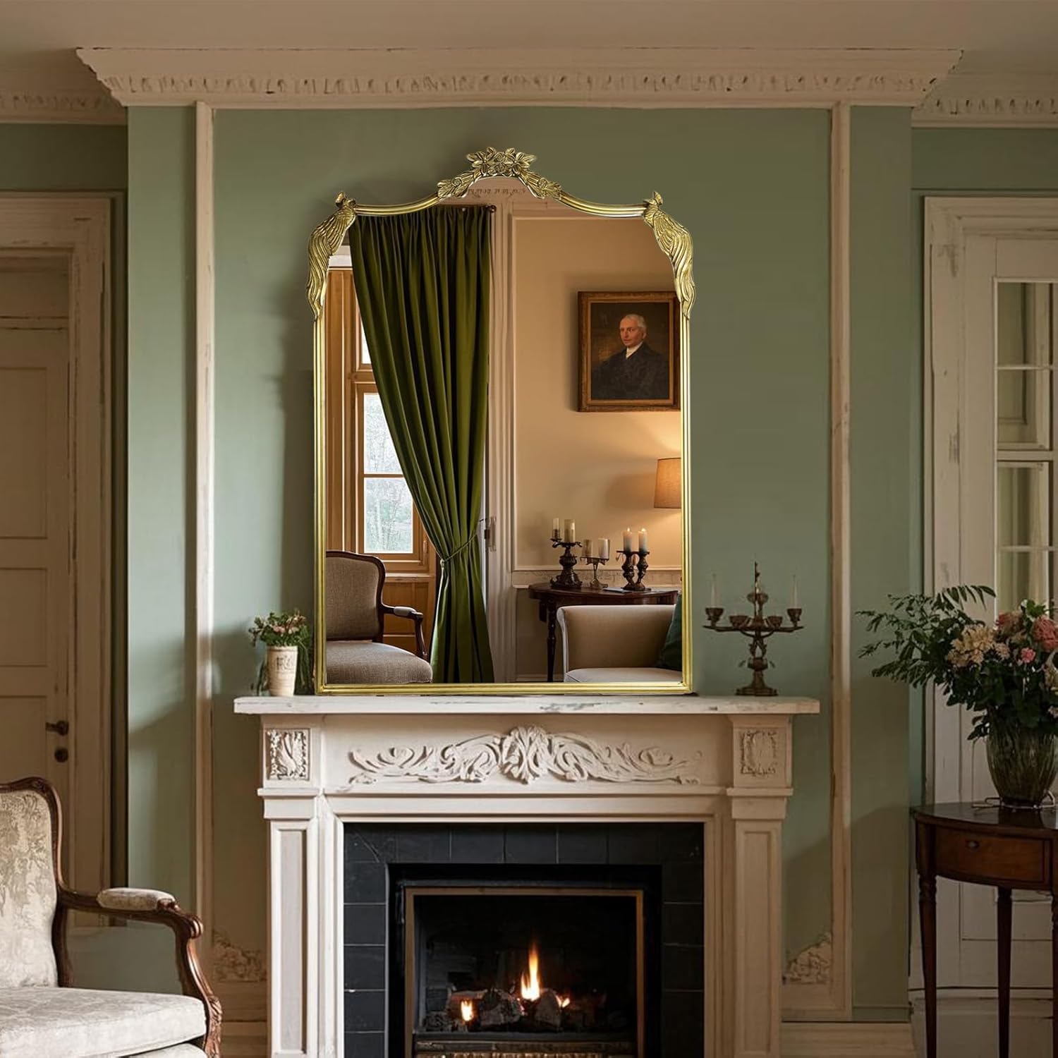 - Use this gold baroque mirror as a beautiful bathroom mirror, or you can use it as a decoration for space expansion in the living room, bedroom or entryway. Arched mirrors can be leaned against a wall or placed on a fireplace mantel. This retro gold arched mirror can be used as a traditional ornament that can be displayed in many places in the home.