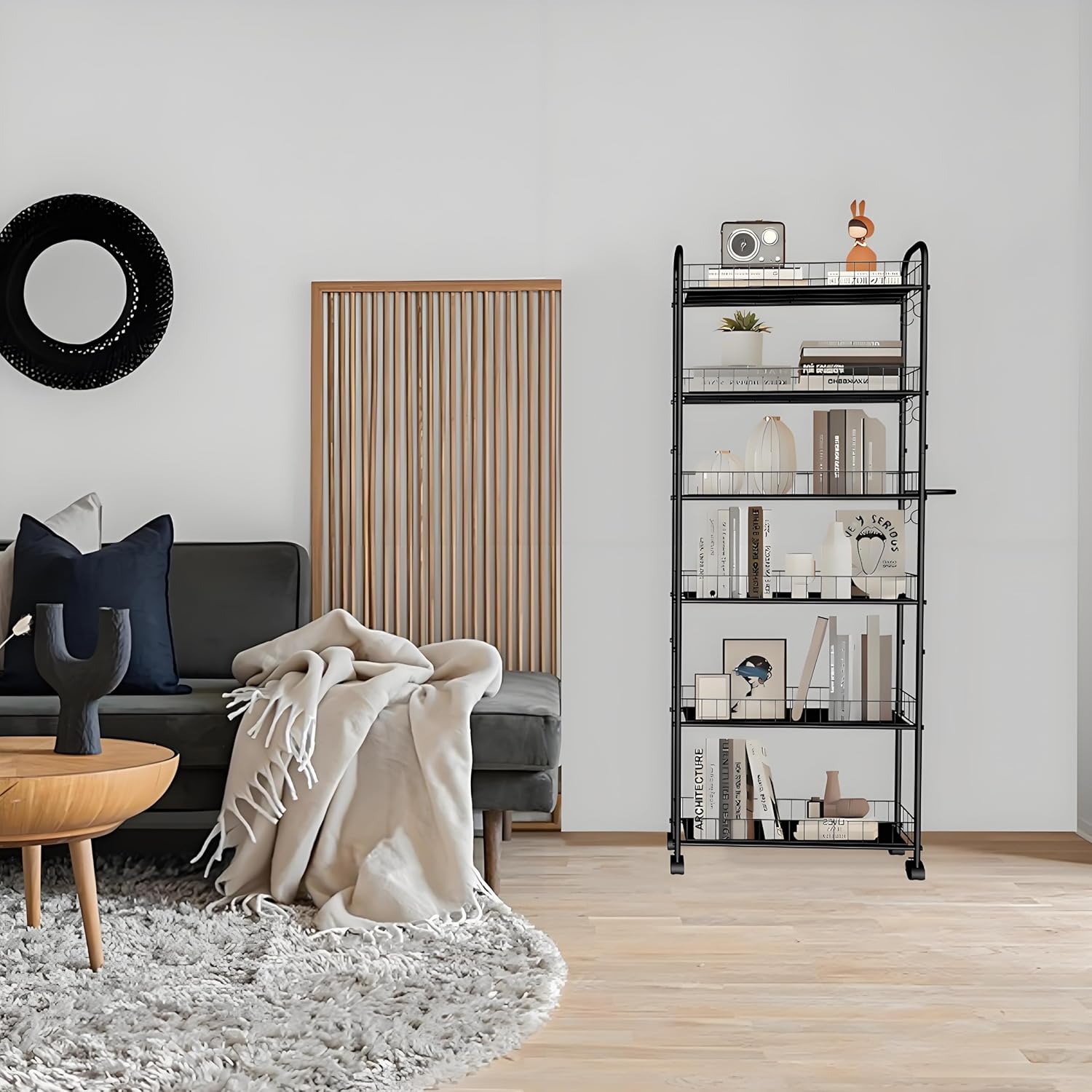 - [Flexible 6 Tier Slim Storage Cart]This black slim storage cart measuresx6"D x 22.8"W x 61.5"H making it perfect for storage in small spaces around your home. The slim cart easily slides between closets, kitchens, bathroom, garages, laundry rooms, offices, or in-between yourwasher and dryer