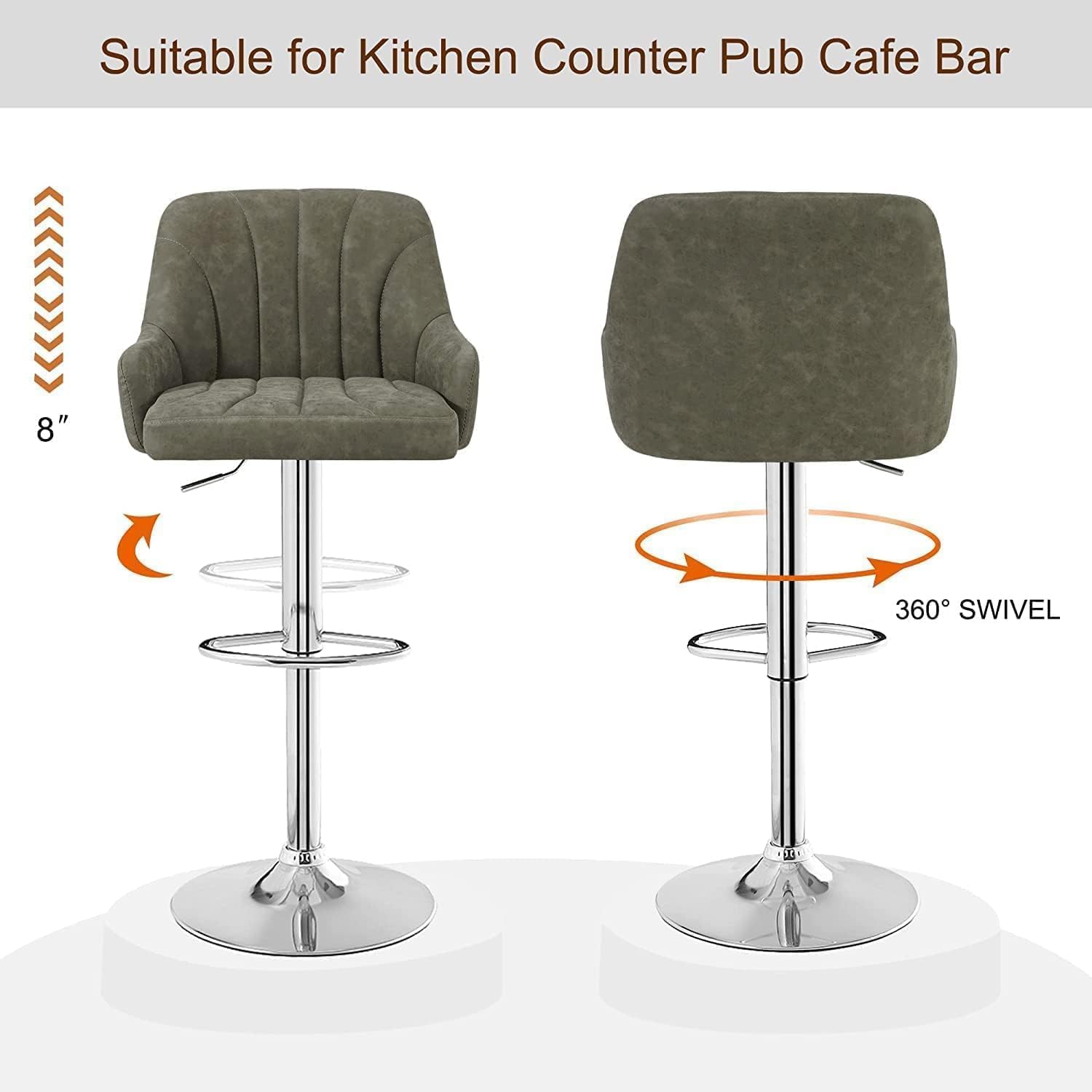 - 【Adjustable Height & 360° Swivel】Easily adjust the height of these adjustable bar stools to accommodate different counter and table heights from 35.4" to 43.7"H, thanks to the smooth gas lift mechanism. The 360° swivel bar chairs feature offers added convenience and flexibility, allowing you to engage in conversations effortlessly.
