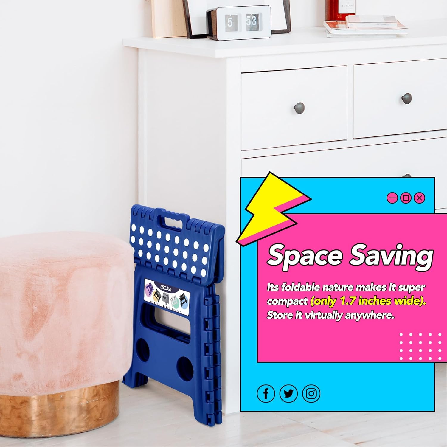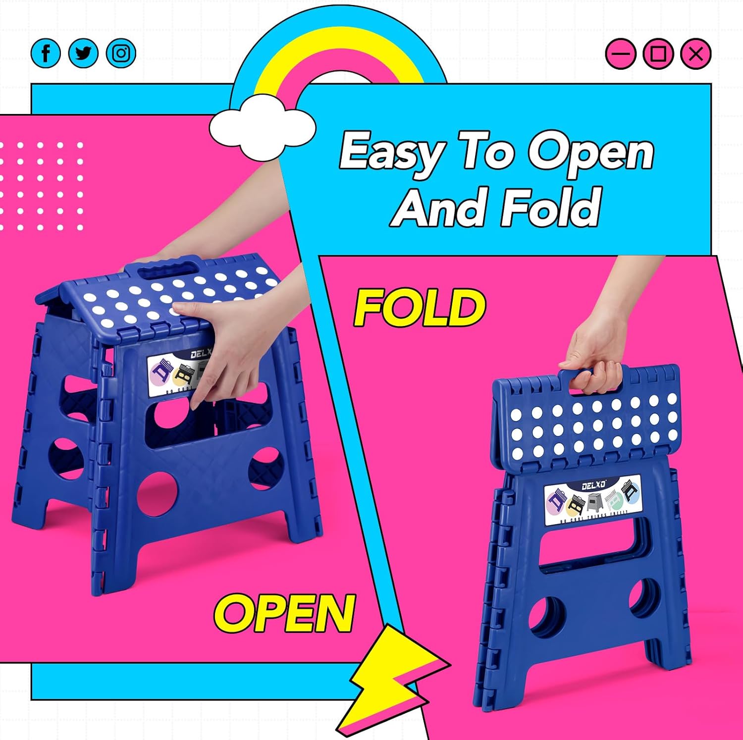 Delxo Folding Step Stool, 13 inch Non-Slip Foldable Stools Up to 300 LBS, Step Stool with Handle, Lightweight for Kitchen, Bathroom, Bedroom, Garden, Blue, 1PC