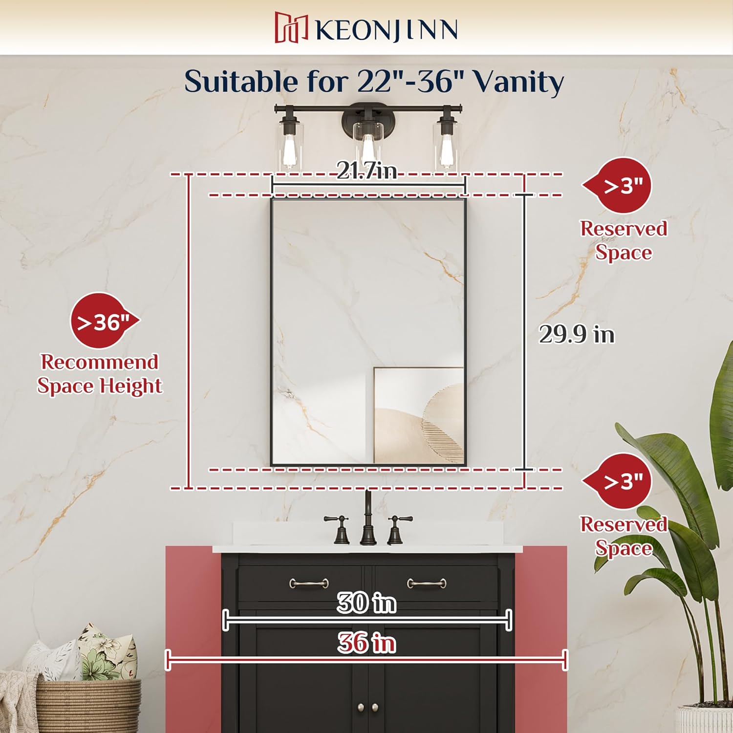 - 【Brand Keonjinn】We have been committed to providing consumers with quality decorative bathroom mirrors. As the leading brand in the mirror category, Keonjinn always brings excellent wonderful quality and superior customer experience.