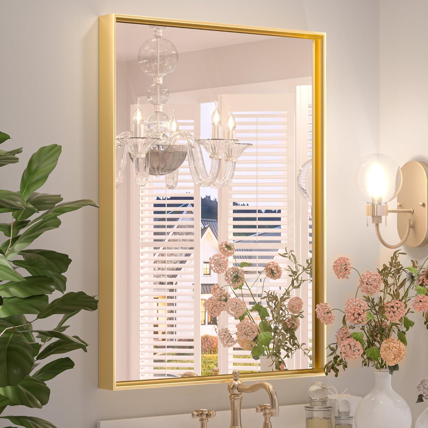 - 【Returnless and Free Replacements】Gold framed bathroom mirror damaged on arrival or other problems, no need to worry, we are always there for you with a satisfied solution. Please don't hesitate to get in touch if there's anything we can help with you.