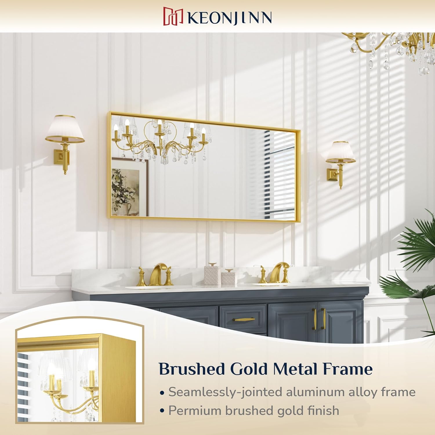 Keonjinn Gold Bathroom Mirrors for Wall 48 x 24 Inch Brushed Gold Frame Rectangular Vanity Mirror Large Metal Framed Farmhouse Mirror for Bathroom Sink Modern Full Length Mirror(Horizontal/Vertical)