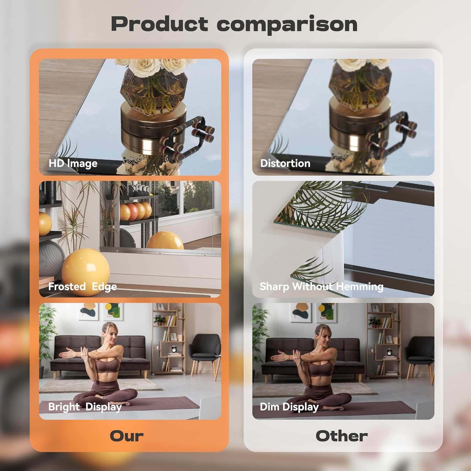 - š„[HD Mirror]-The home gym mirror ensures that the transparency of the glass material reaches a good level, and the imaging is more realistic and high-definition. The home gym mirror can clearly reflect people's postures and movements. It can inspire people's fitness journey and help people see their progress, so that they are encouraged.