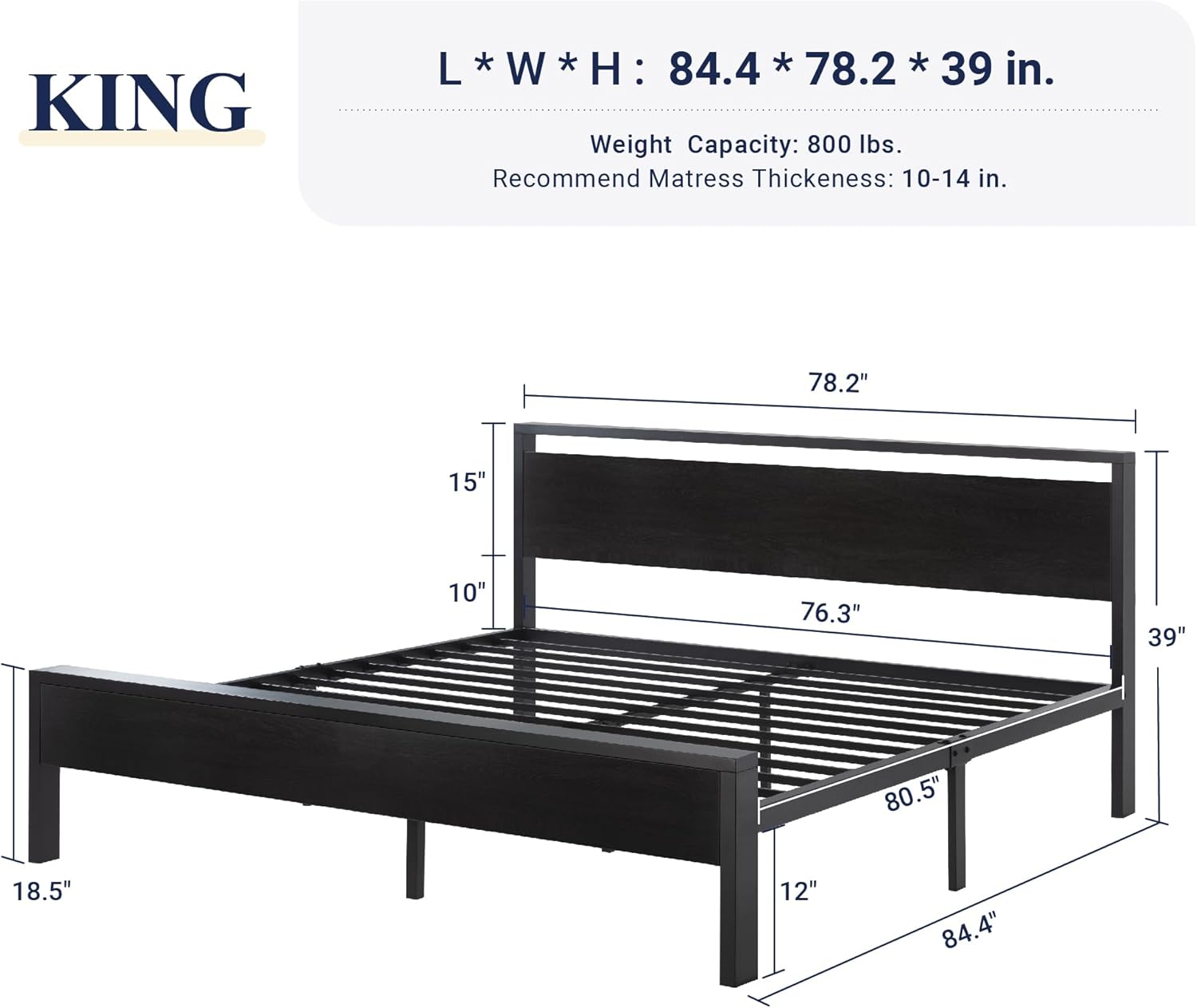 Allewie King Size Platform Bed Frame with Wooden Headboard and Footboard, Heavy Duty 12 Metal Slats Support, No Box Spring Needed, Under-Bed Storage, Noise Free, Easy Assembly, Black Oak
