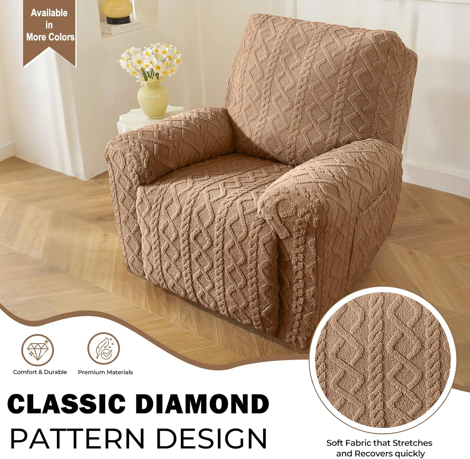 - Package Included: Solid color geometric 4-piece recliner cover contains 1 piece seat cover, 1 piece back cover and 2 pieces arm covers. Fit sofa seat width below 30.7 inch.