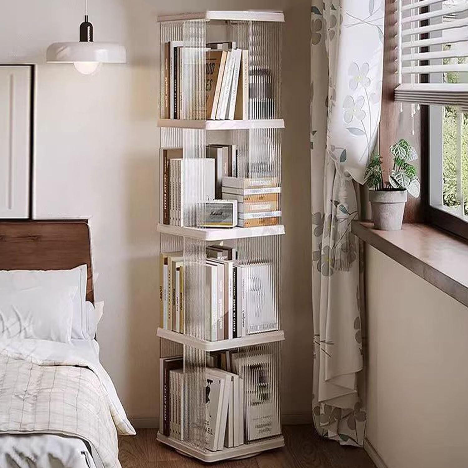 4 Tier Rotating Bookshelf Tower,360 Display Rotating Bookshelf,53.4 inch High Small Space Revolving Bookcase, Home Office Spinning Bookshelf Tower(Rectangular, White)