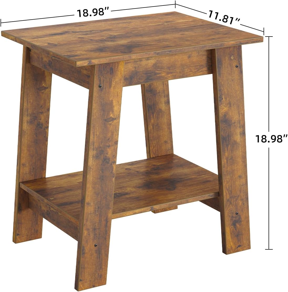 Garvee End Table, Side Table with 2-Tier Storage Shelf, Sofa Table for Small Space, Square Nightstand for Entryway, Farmhouse, Living Room, Easy Assembly, Rustic Brown