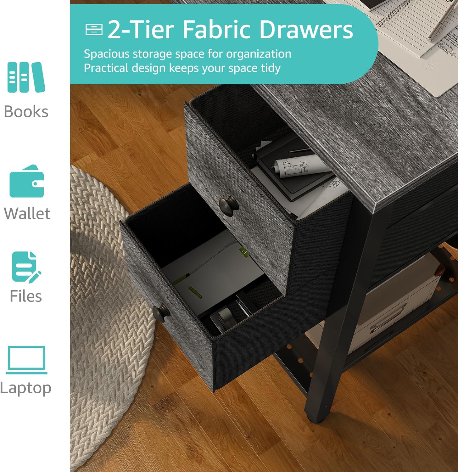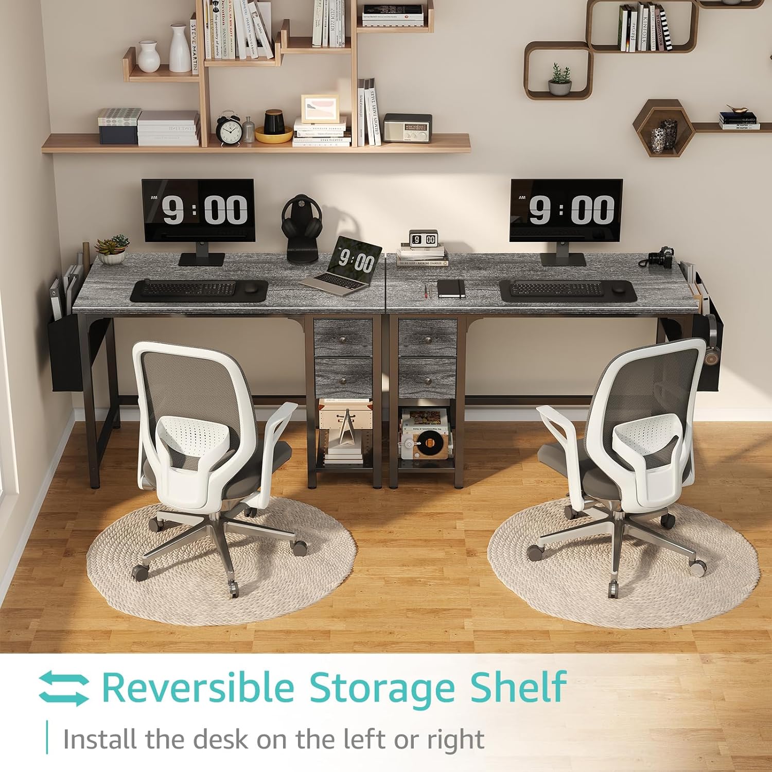 - Working Desk with Ample Storage Options: Computer desk with 2 ππππ§ππ πΏπ§ππ¬ππ§π¨ and 1 storage shelves for super large storage space, you can try this two installation methods (left or right). It also have 1 side storage bag, perfect for holding magazines, notebooks, bags or small electronics