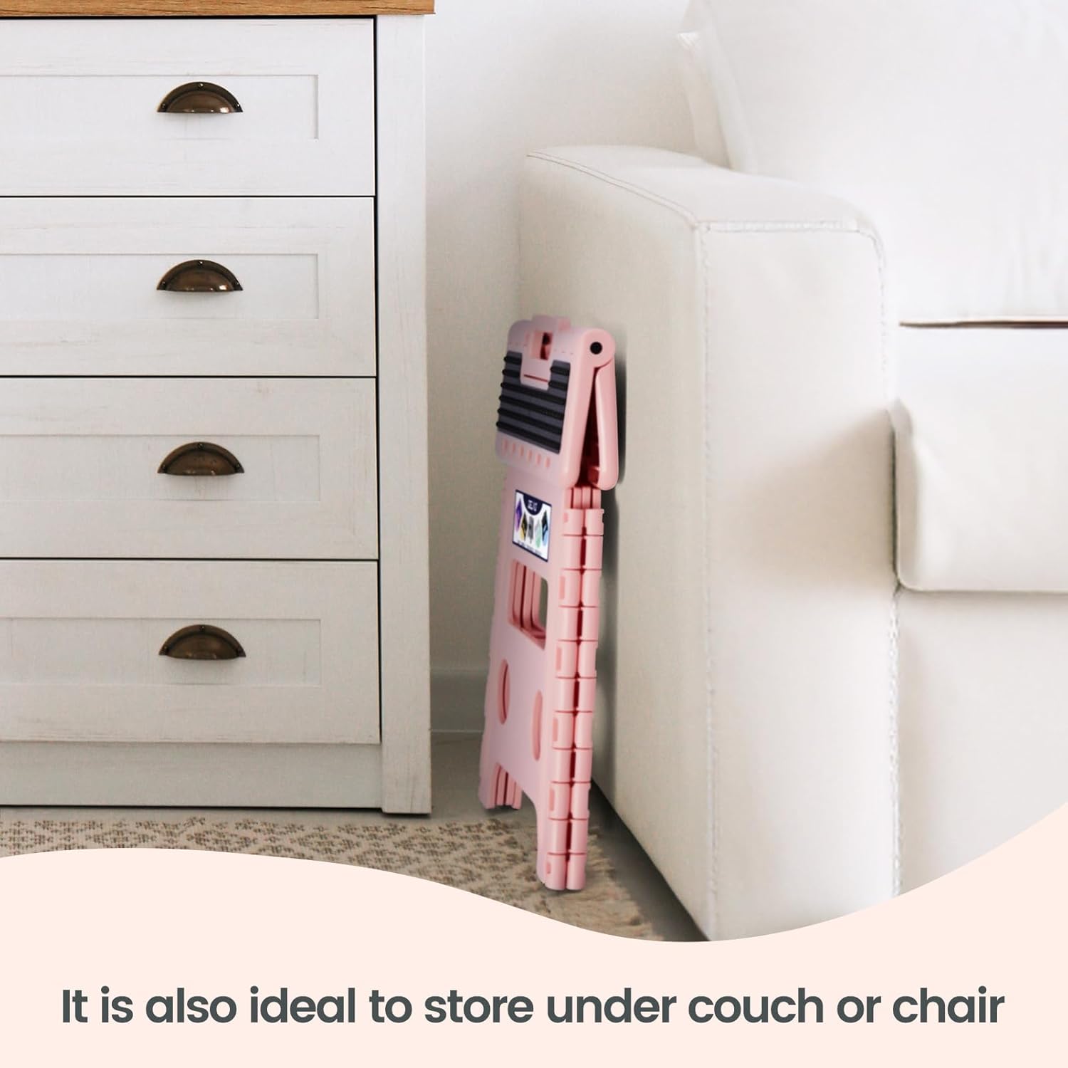 Delxo Folding Step Stool 13 Inch,Non-Slip Foldable Stools for Up to 300 LBS,Kitchen Collapsible Fold Up Stepping Stool with Dotted 1 Pack,Pink