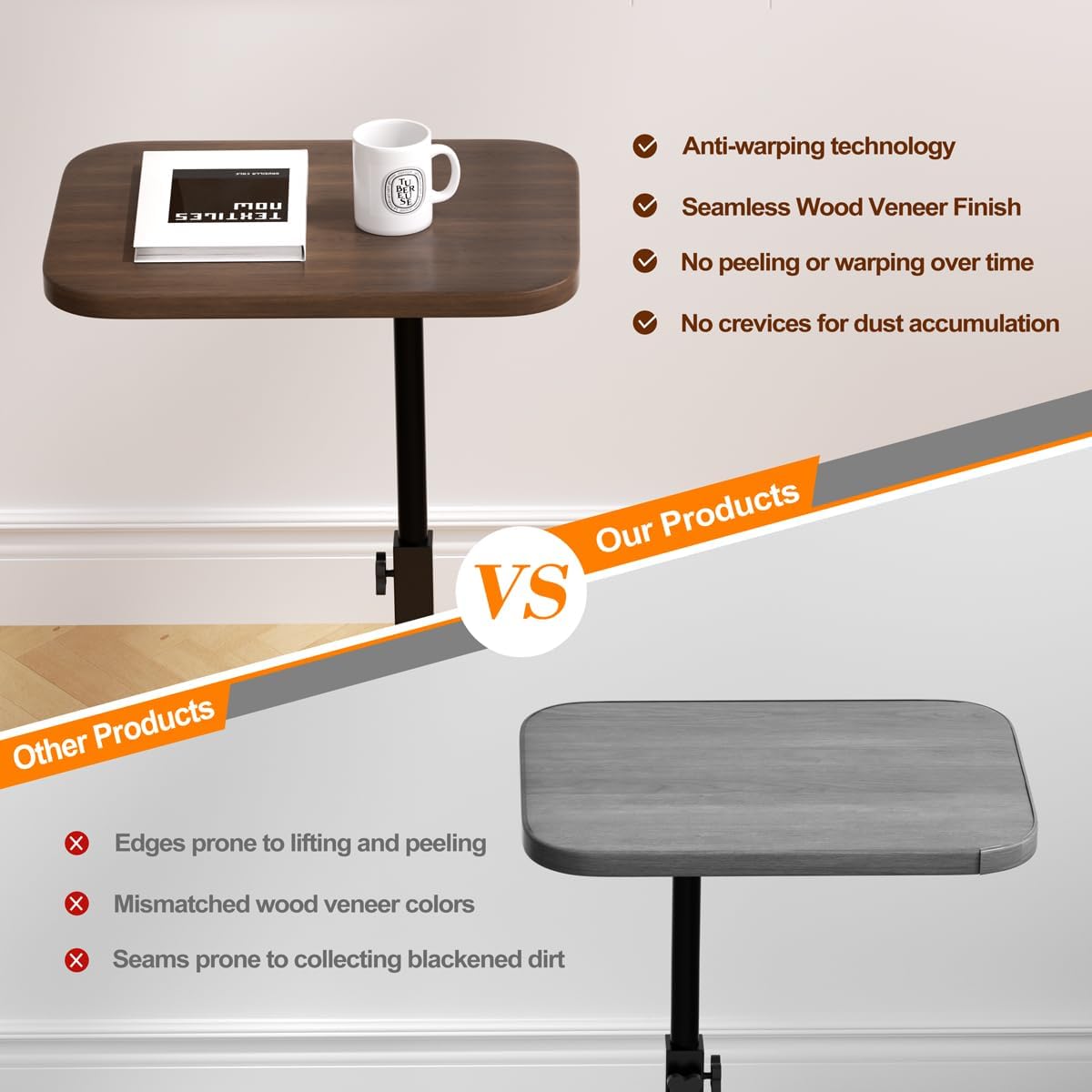 - 【360° Rotating Tabletop】The tabletop of this c table features a 360° rotating function, allowing you to easily adjust the angle for optimal use. Whether as a c shaped end table for couch or a bed table, it offers flexibility and convenience.