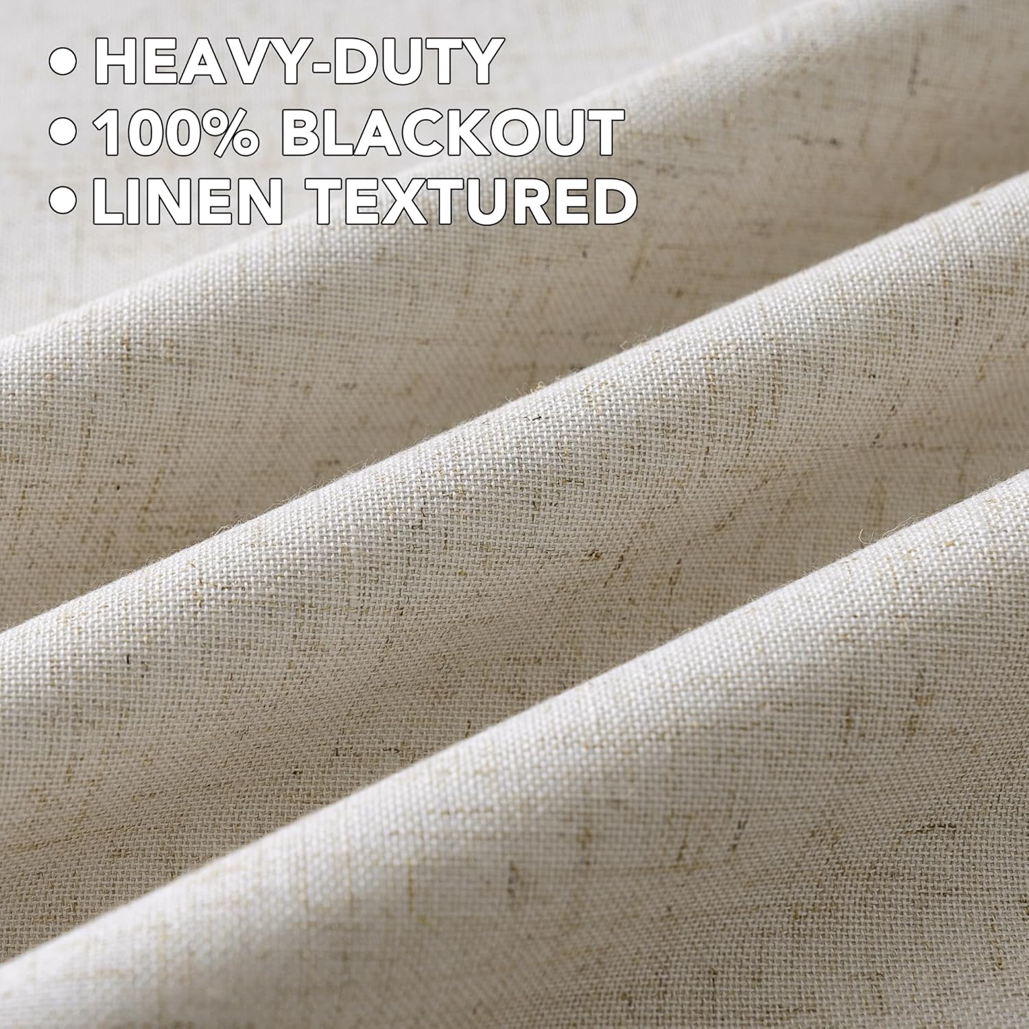 H.VERSAILTEX Linen Curtains 100% Blackout Curtains for Bedroom 84 inch Long Full Light Blocking Nature Linen Blended Window Curtains for Living Room Nickel Grommet (2 Panels, Heathered Linen)