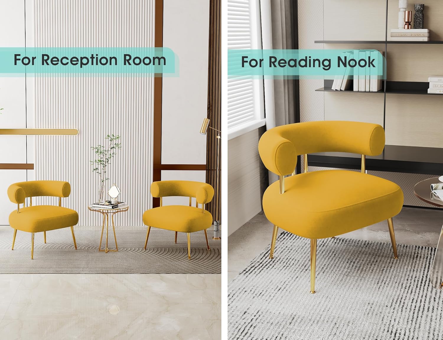 Modern Velvet Accent Chair, Round Upholstered Barrel Armchair for Small Spaces, Fluffy Side Corner Sofa Chair for Living Room, Bedroom(Yellow)