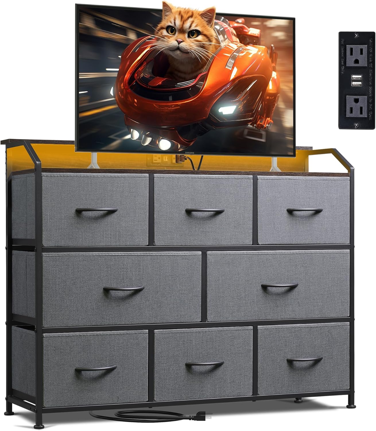- 【✨Modern Customizable LED Light】This wide fabric dresser is equipped with countless (at least 31) light modes and colors, you can freely adjust the brightness and colors for any scene. The dresser with charging station has 2 USB ports, so you can easily charge your media devices without the need for extra extension cords