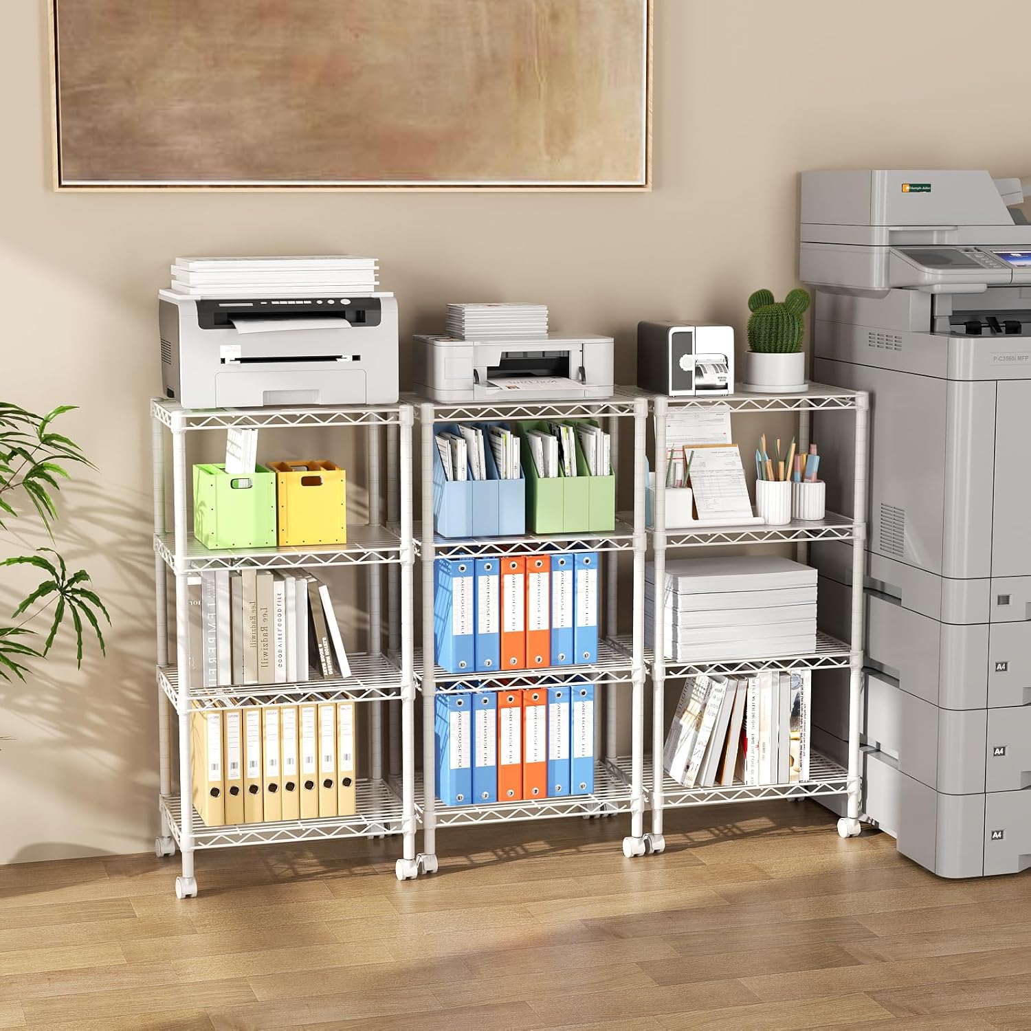 SINGAYE 4 Small Shelves Storage Shelf Wire Shelving Unit Metal Shelf Adjustable Organizers Storage Shelving with Wheels for Bathroom Laundry Room Kitchen Pantry