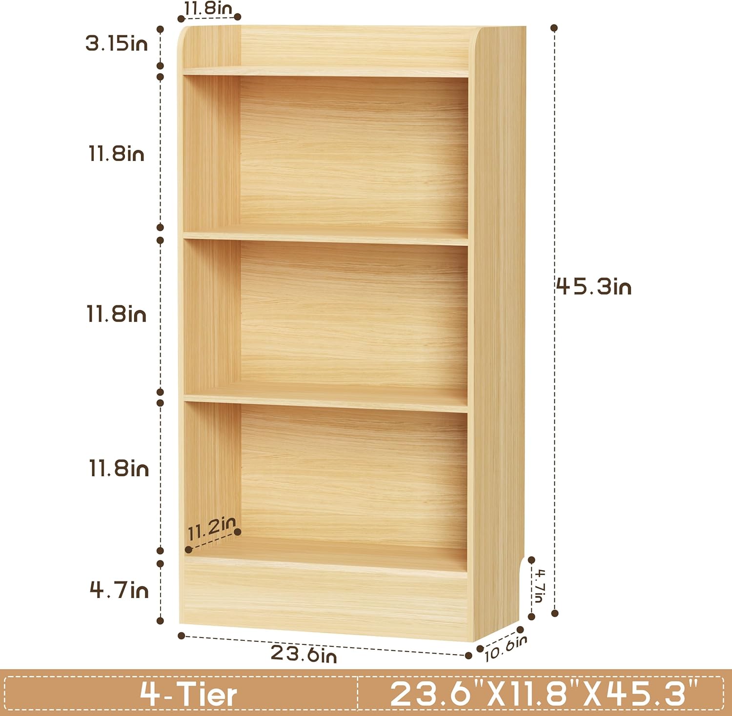 Lkeiyay Kids Bookshelf,Wooden Storage Shelf Organizer,4-Tier Montessori Kids Shelf,Wooden Storage Cabinet Shelves for Kids Room,Playroom(Natural)