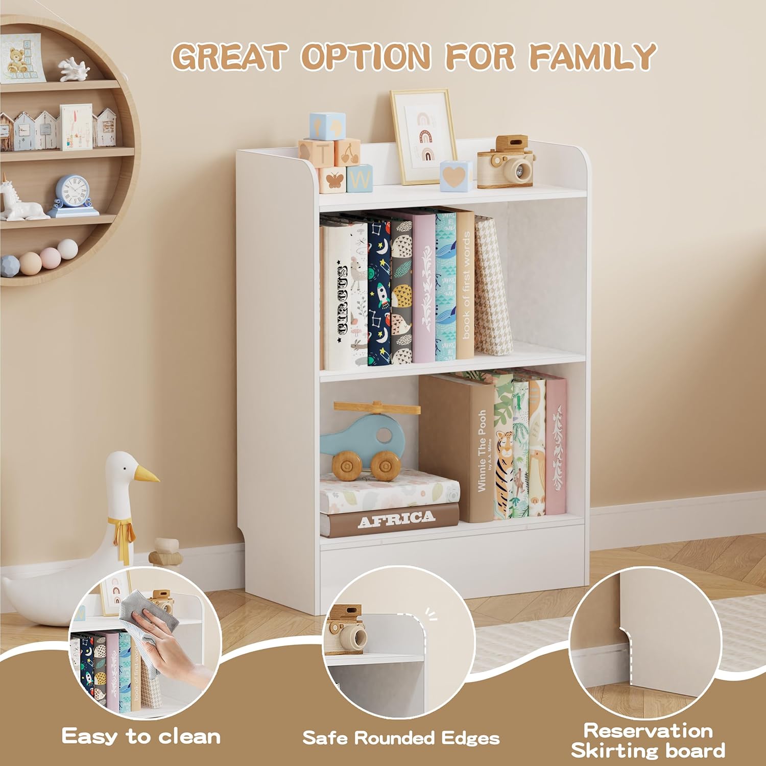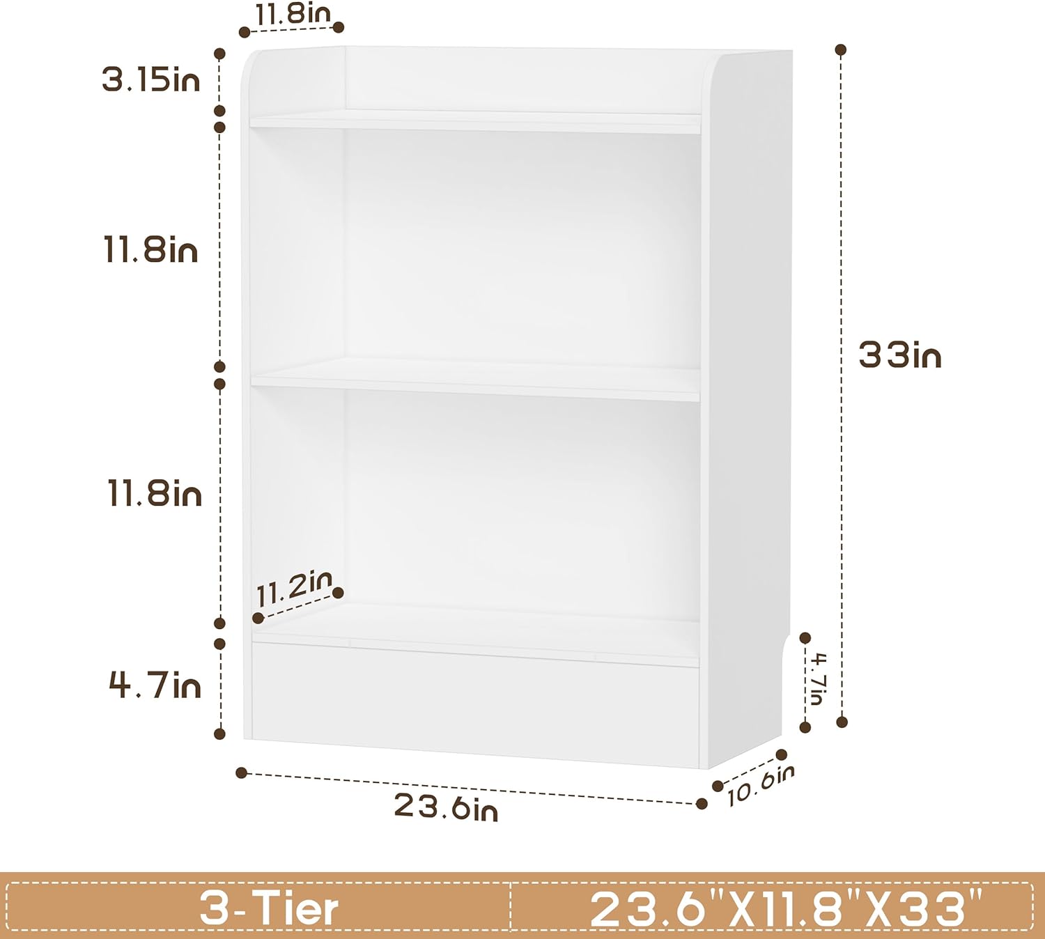 Lkeiyay Montessori Shelf,3-Shelf Toy Storage Organizer,Wooden Storage Cabinet for Kids Room, Nursery, Playroom Daycare Furniture (White