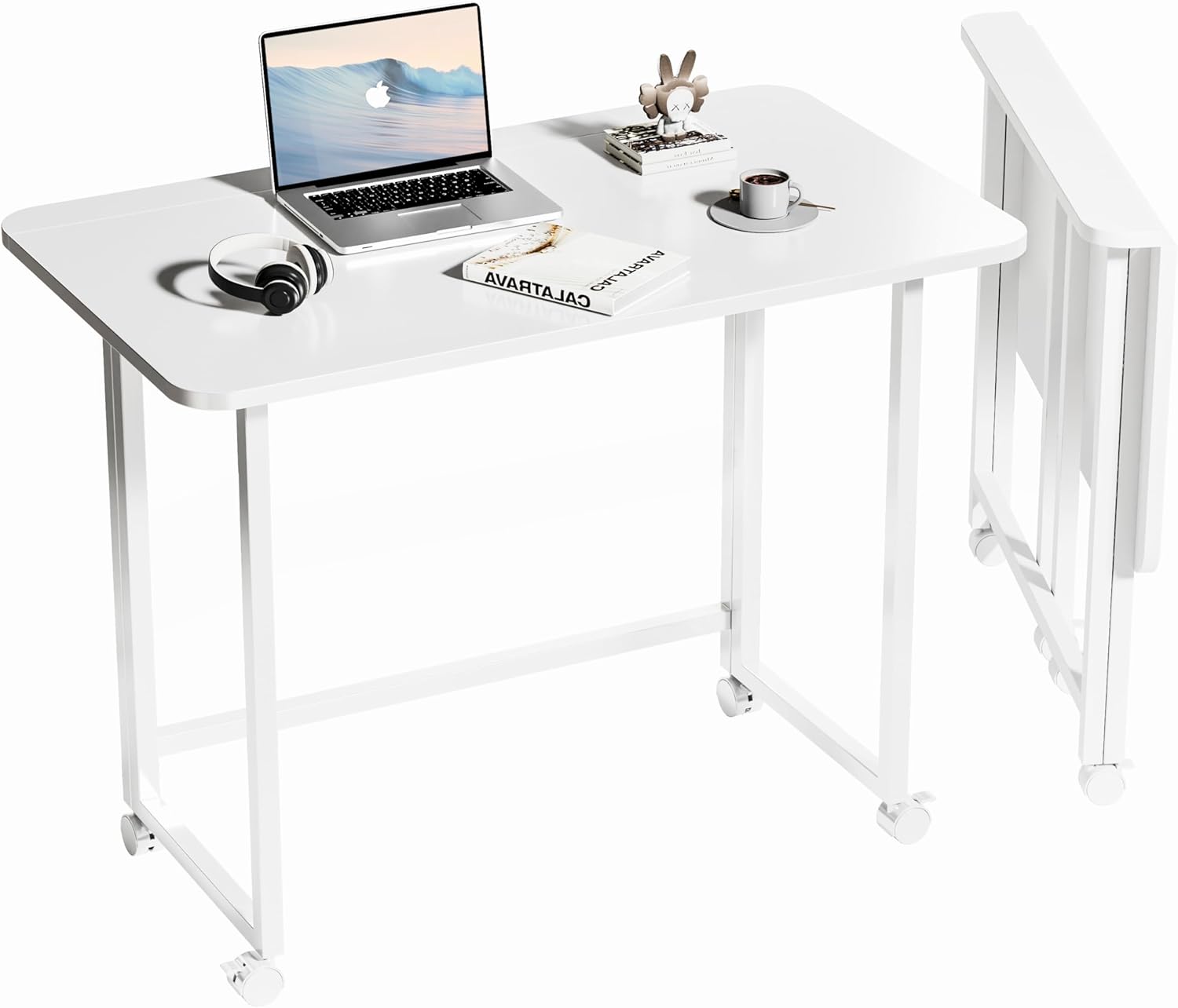 Folding Desk,Not Require Assembly,Small Foldable Desk 31.5" for Small Spaces,Space Saving Computer Table Writing Workstation for Home Office,White