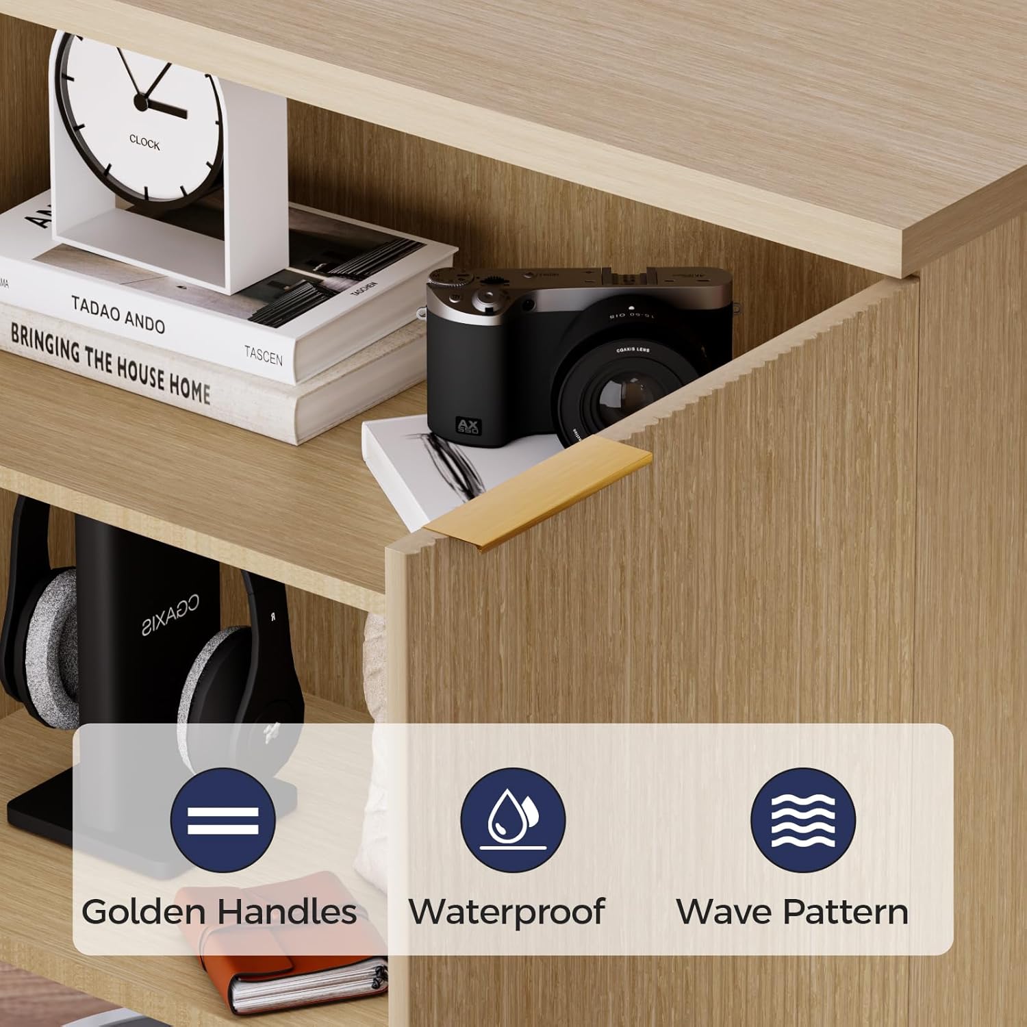 Buffet Cabinet with Storage, Wood Fluted Multifunctional Storage Cabinet with 2 Doors, Sideboard Buffet Credenzas for Living Room, Entryway, Hallway, Natual Oak