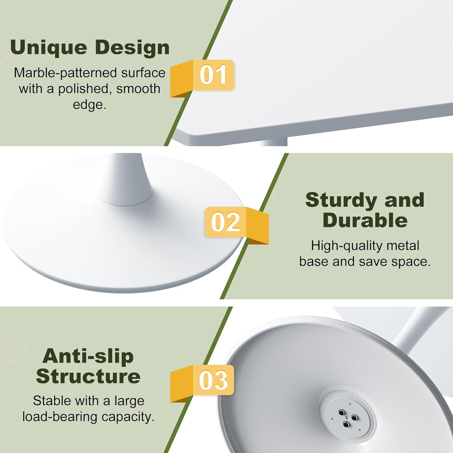- [Elegant Marble-Inspired Tabletop]: The sleek PVC-coated surface features a sophisticated marble pattern, effortlessly complementing any décor while adding a touch of modern elegance to your living area.