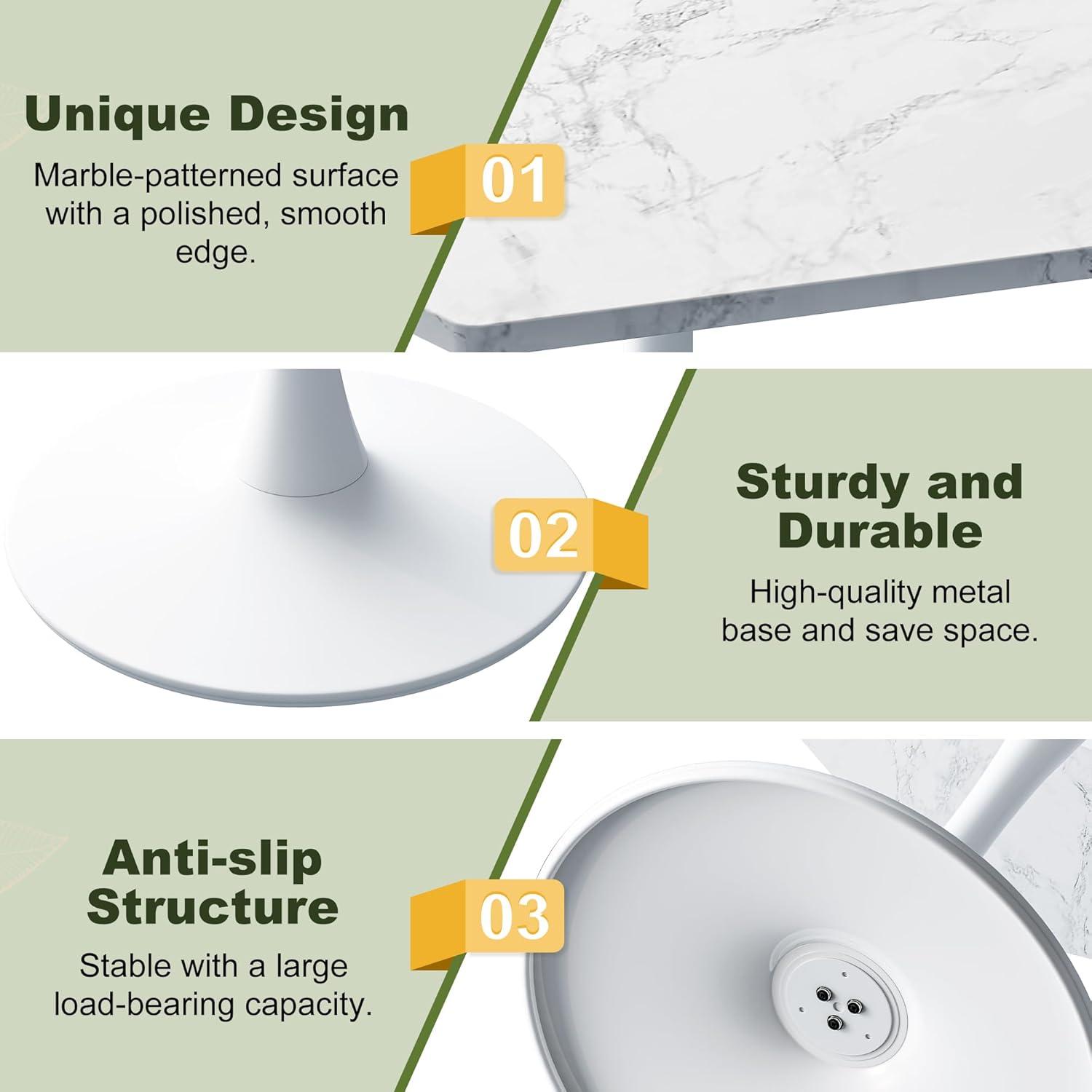 - [Elegant Marble-Inspired Tabletop]: The sleek PVC-coated surface features a sophisticated marble pattern, effortlessly complementing any décor while adding a touch of modern elegance to your living area.